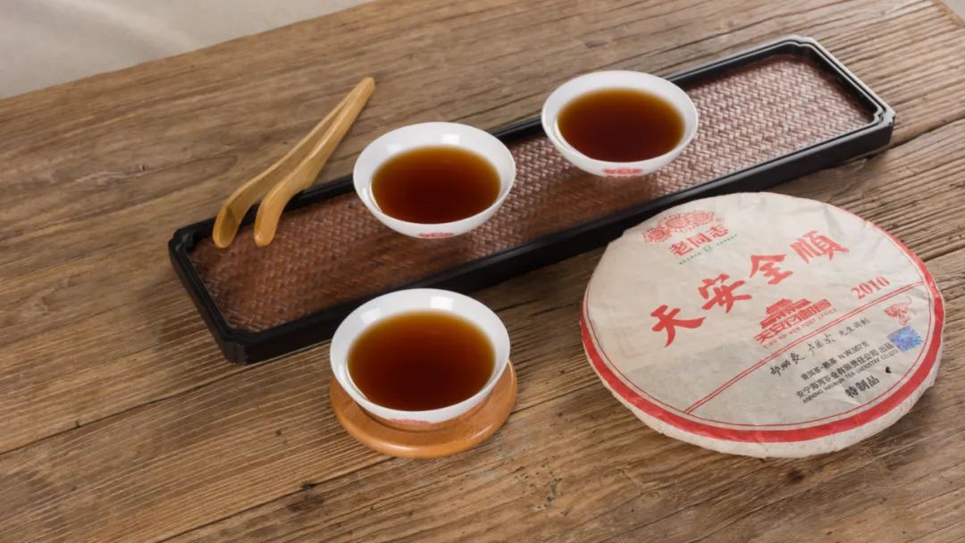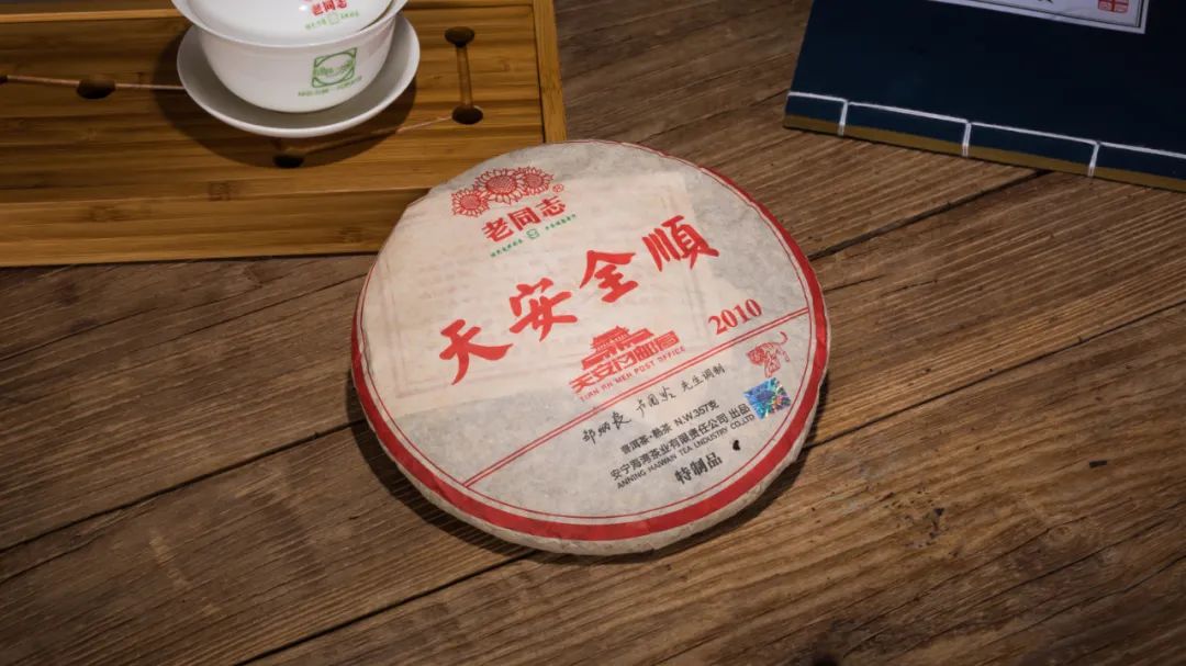 天安全顺熟饼熟饼饼形圆润规整,油润有光泽、条索均匀清晰粗壮,干茶味道芳香,里外选料一致选用云南大叶种晒青毛茶,至今已是12年陈化熟茶,色泽油润显毫、肥壮厚重,金芽显露。