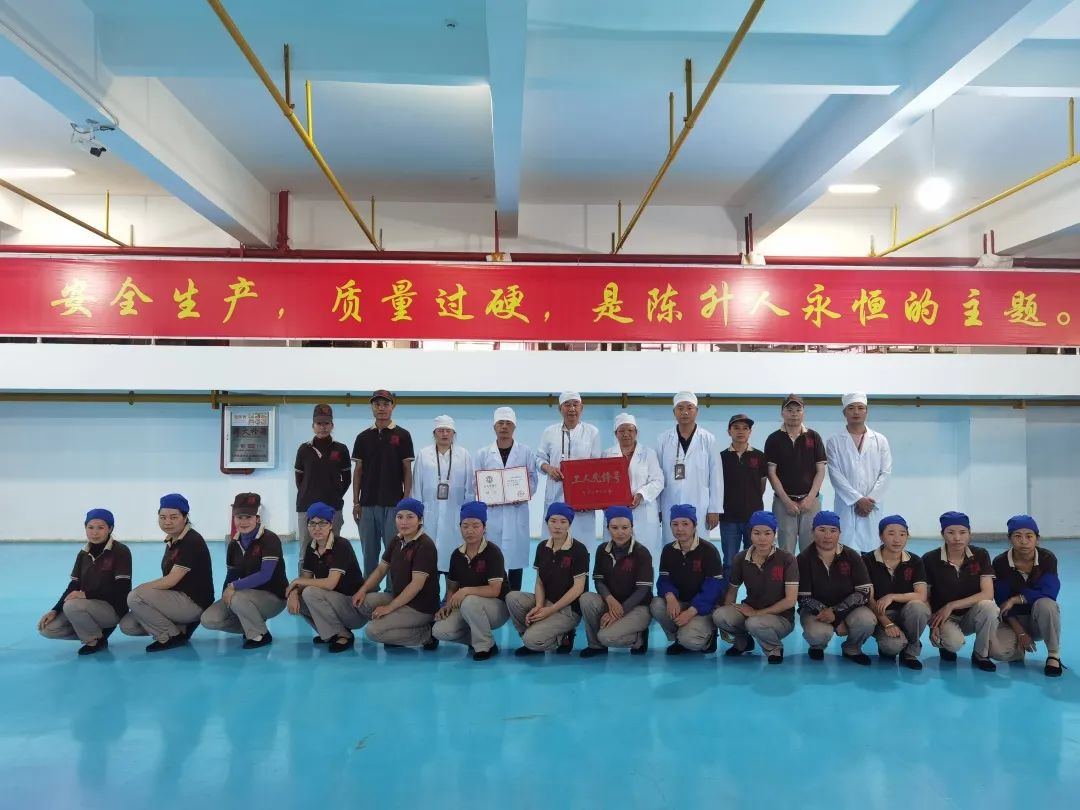 陈升茶业生产车间,现有职工121人,主要分为拼筛组、捡梗组、压制组、包装组四个核心小组,秉承“以制药的理念制茶”,生产全程实现流程化、标准化、制度化。普洱成品茶年产量逐年增加,连续多年超额完成公司下达的各项生产任务。车间严控产品质量,专注生产过程技术改良和改造。所生产的普洱茶产品被认定为云南省名牌产品,近百个产品荣获国内外“茶王奖”和“金奖”等称号;2016年荣获“云南省工人先锋号”。