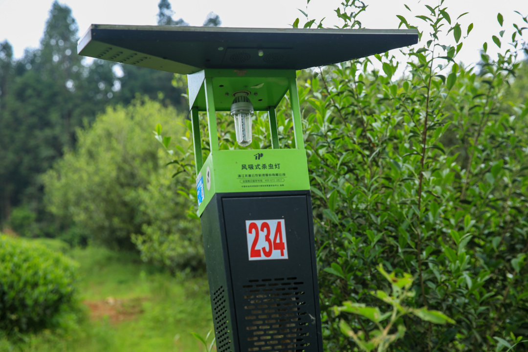 1.茶园安装了近百台太阳能杀虫灯,太阳能杀虫灯诱杀害虫种类多、数量大,能大幅度降低害虫落卵量,压低虫口基数和密度,还可节约能源,防止天敌入侵。