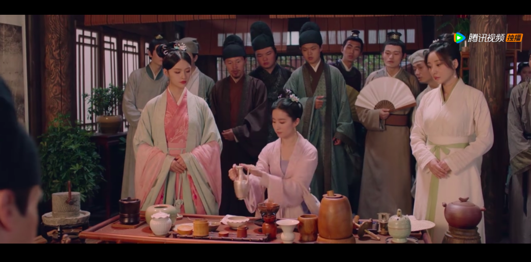 △电视剧《梦华录》中,刘亦菲饰演的“女一号”赵盼儿与茶楼掌柜斗茶的场景。