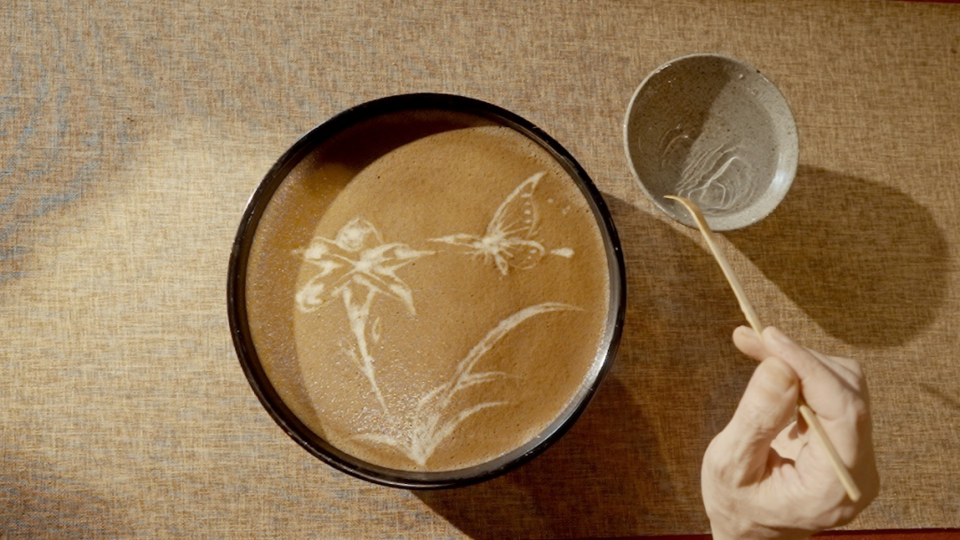 其实,它来自于我国传统绝活——茶百戏。茶百戏,又称“分茶”、“水丹青”等,历史上,盛行于福建武夷山一带。它起于唐,盛于宋,是只用茶和水作原料,在茶汤表面幻变出文字和图案的独特技艺。