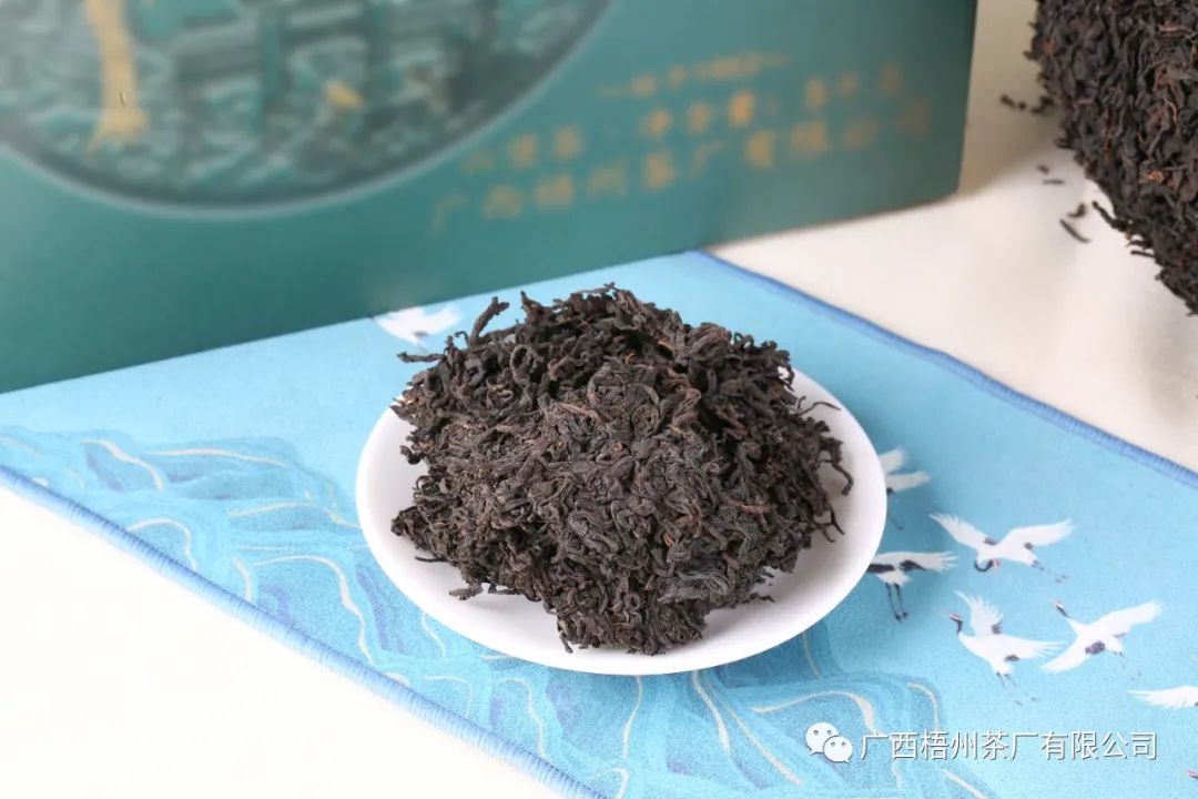 【桂青团茶】六堡茶精选优质原料,结合梧茶公司传统工艺流程制作,既有三鹤特有的韵味,又带着幽幽兰花蜜香,透着清凉感。