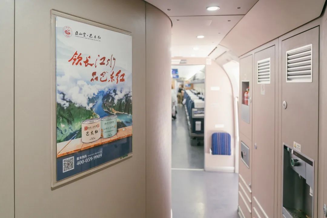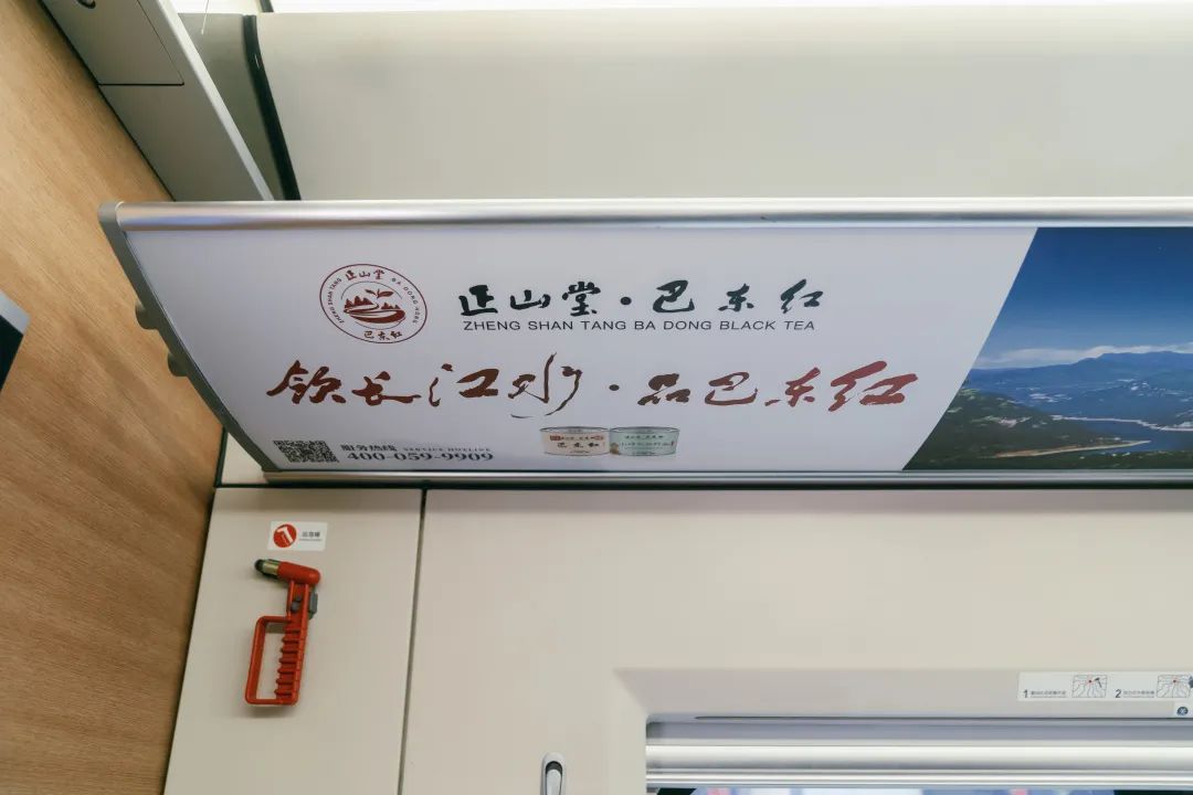 除了外车身贴、头枕巾、小桌板、行李架创意贴这些可视化元素,语音播报等媒体也将呈现巴东红相关广告,实现全媒体传播矩阵。通过全方位、高频次、长时间的品牌曝光,将中国传统茶饮文化及正山堂·巴东红的品牌魅力根植亿万旅客的心中。