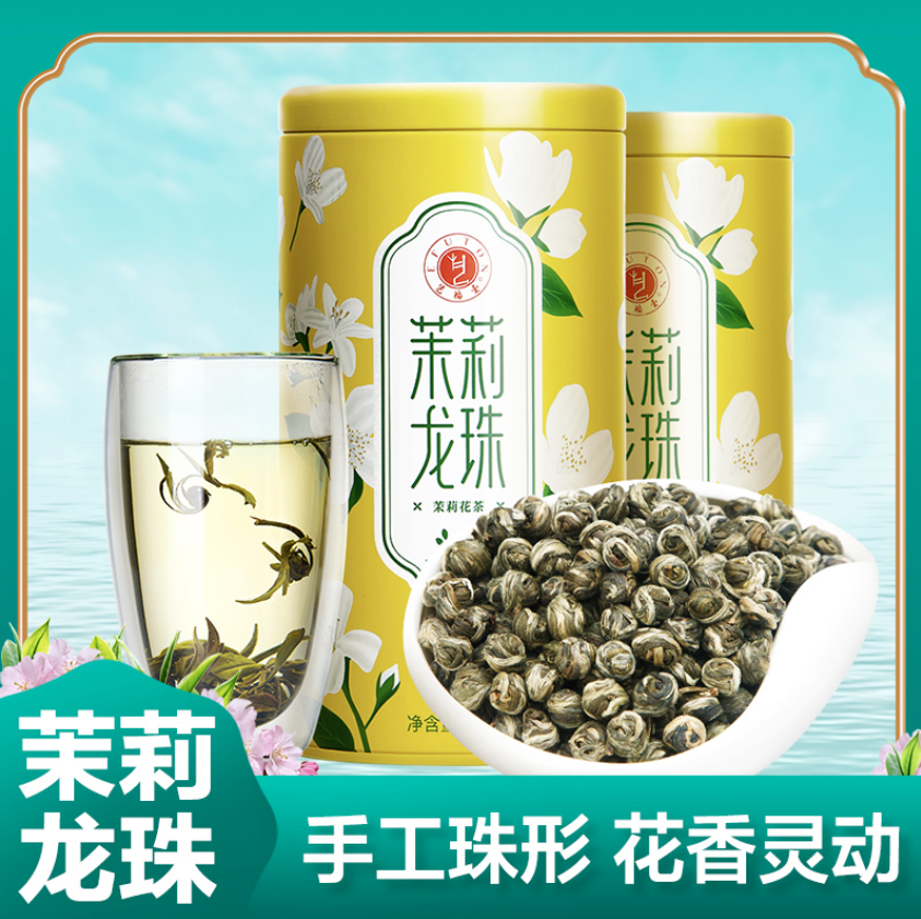 荣登中秋茶礼爆款榜第一的这款茉莉龙珠产品,是艺福堂珠形茉莉花茶又一经典力作,由浙江高山绿茶和广西横州茉莉七窨一提而成;新中式包装,采用高贵的宫廷黄配色,朵朵洁白的茉莉花盛开环绕,点点花蕊吐着清雅的芳香,透过包装仿佛就可以嗅到茉莉花茶馥郁的芬芳。茉莉龙珠干茶颗粒圆紧,白毫满披,香气鲜灵馥郁,茶汤清澈透亮,醇爽回甘,叶底芽叶挺秀,柔嫩有光泽,七泡有余香,热泡香气馥郁,冷泡蜜韵冰甜,备受罗永浩、马未都等头部主播的青睐,上市2年来,已拥有购买客户10万+。