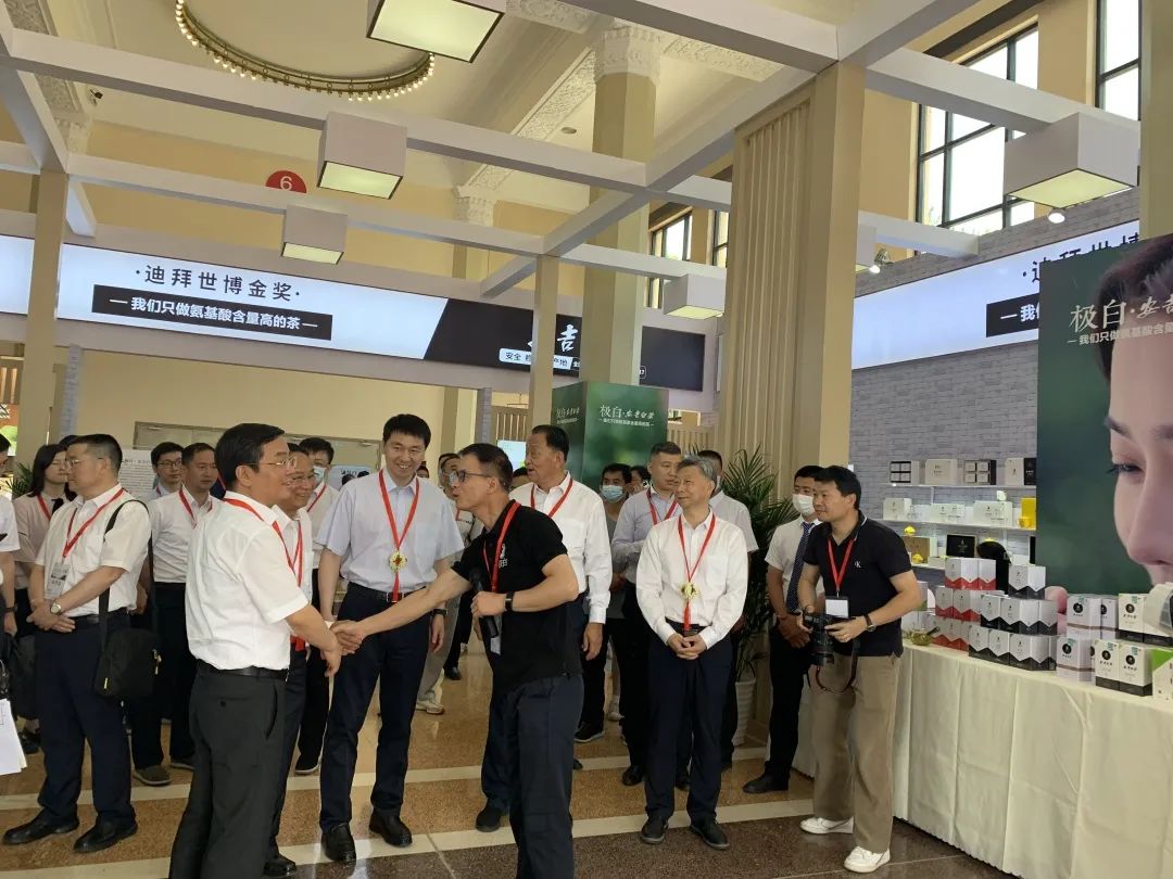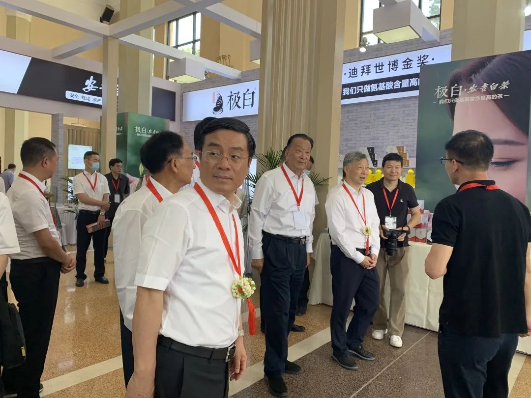 北京市西城区区委书记刘东伟,中国茶叶流通协会会长王庆等领导莅临极白展馆,参观了极白的产品展区,为极白鼓劲加油。