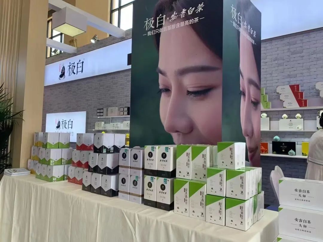 极白新品——采用传统和创新窨花工艺制成的茉莉花茶”茉莉天香“,”茉莉甘雪“,2022迪拜世博金奖产品”极白庄园·中国礼“系列,以及极白热销产品”茶宴“”绿水青山“”大师极白“”先生礼“等集中展现,众多极白的经典产品亮相展会,吸引一大批逛展茶客前往打卡、品鉴。