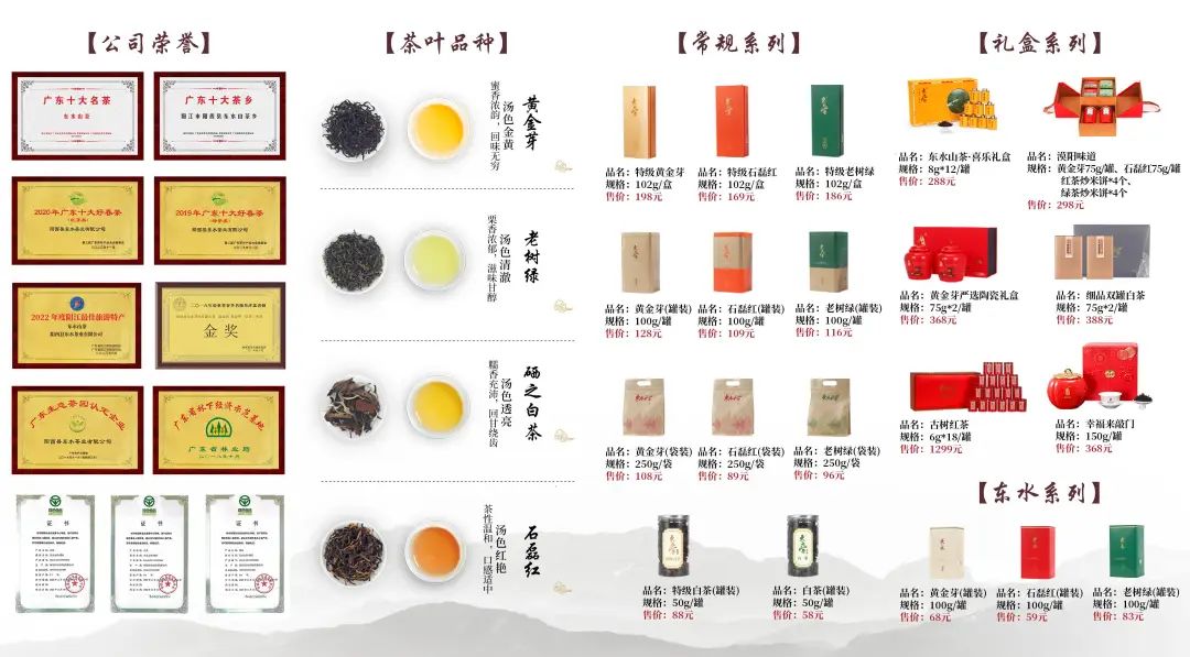作为广东中之平集团控股,集种植、研发、加工、销售为一体全产业链现代化的茶企,阳西县东水茶业有限公司是集团农业发展事业部倾全力发展的一项扶农助农项目,借助阳西山海优势,力争将东水山茶打造成为省内、国内著名特色农产品品牌。