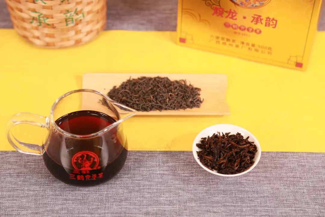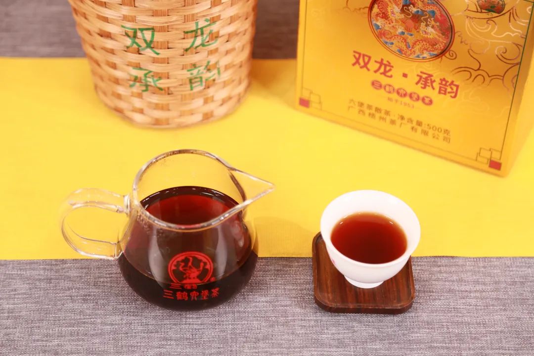 2018年三鹤推出了第一款【双龙·承韵】便在当年北京“两展一节”茶叶产品推选活动中大放异彩;去年推出的【双龙承韵2022】又在2023梧州六堡茶文化节——全球六堡茶品鉴斗茶大会上斩获“七星茶王”。