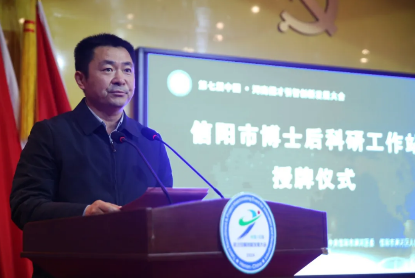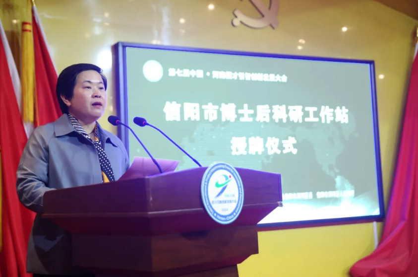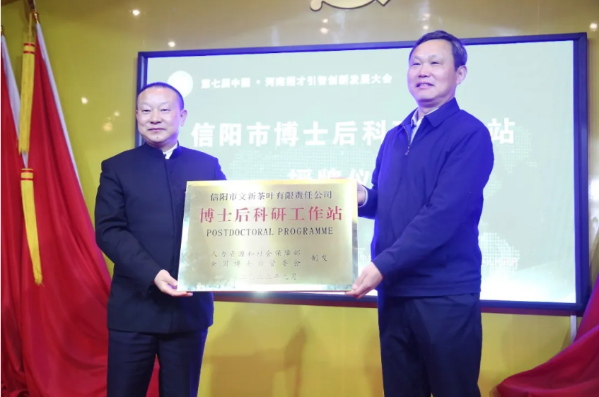 周晴在授牌仪式讲话中首先代表市委人才办、市人社局对文新茶叶有限公司和信阳市谷麦光电子科技有限公司获批国家级博士后科研工作站表示祝贺。她说,截至目前,我市已设立国家级博士后科研工作站3家,省级博士后创新实践基地26家。