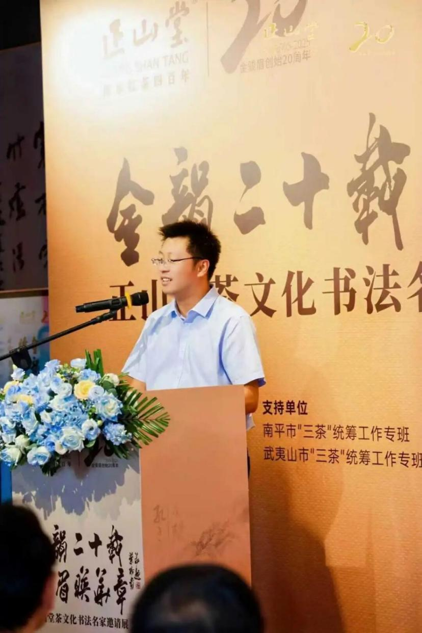 正山堂茶业有限责任公司董事长江志东表示:从传承、复兴正山小种,到创新研制金骏眉,再到打造地方特色与标准品质兼具的骏眉红茶产业体系,正山堂始终致力于茶文化传播与茶产业振兴。正山堂书画院自创立以来,始终致力于传承弘扬中华优秀传统文化,此次以金骏眉创制二十周年为契机,携手众多当代书法名家,共同打造这一场以茶文化为内核的书法艺术展览,正是以艺术赋能产业、以文化引领消费的一次积极尝试。