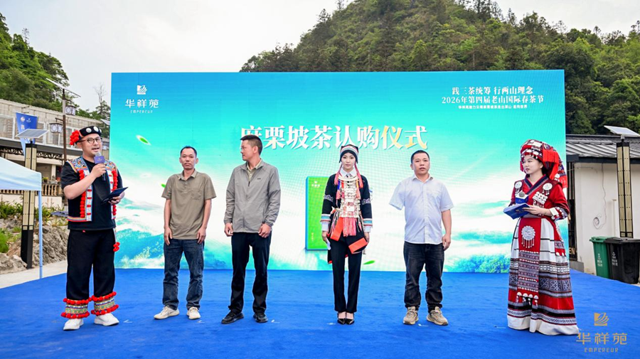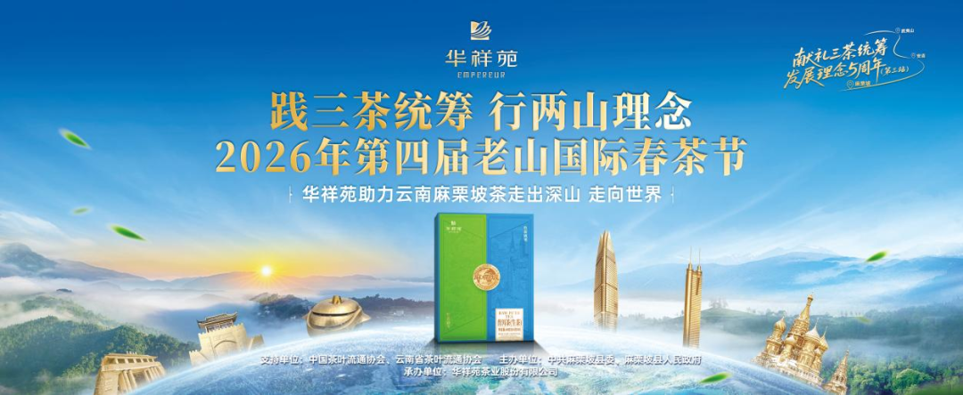 4月22日世界地球日,在“三茶统筹”理念提出五周年之际,2026年第四届老山国际春茶节开幕式暨“践三茶统筹·行两山理念 华祥苑助力麻栗坡茶走出深山 走向世界”主题活动在云南文山州麻栗坡县举行。这里是老山精神的发源地,也是华祥苑践行“两山理念”的第三站。从武夷山燕子窠到边境麻栗坡,华祥苑将茶产业振兴的触角延伸至边疆,通过乡村振兴共建点揭牌、新品发布、定点帮扶农户认购等系列举措,助力麻栗坡茶产业实现标准化、规模化发展,让深山好茶跨越山海,走向更广阔的世界。