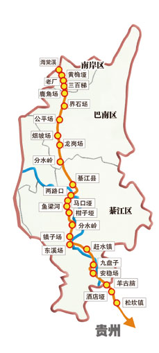 起于海棠溪,翻越南山,途经黄桷垭、老厂,再沿三百梯往下进入过去巴县现在的巴南辖区,这是史料记载的“綦岸运道”陆路最初的一段路。