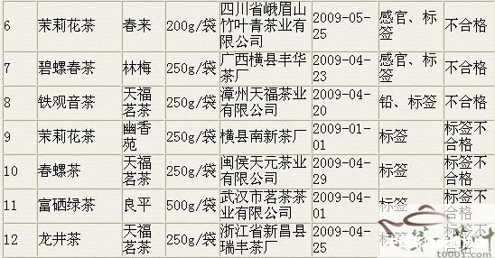 2009年2季度食品抽样检测不合格食品名单(茶叶):