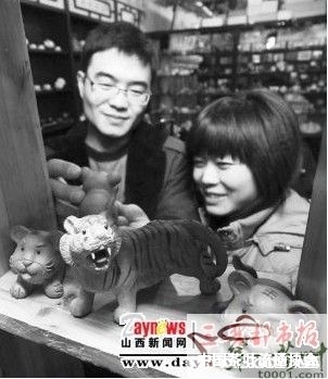 1月20日,在太原市一个茶城内,两位市民正在挑选茶宠老虎。今年是我国传统的农历虎年,春节里亲朋好友聚在一起喝茶聊天,茶宠老虎可以增加节日的喜庆气氛,因此受到人们青睐。
