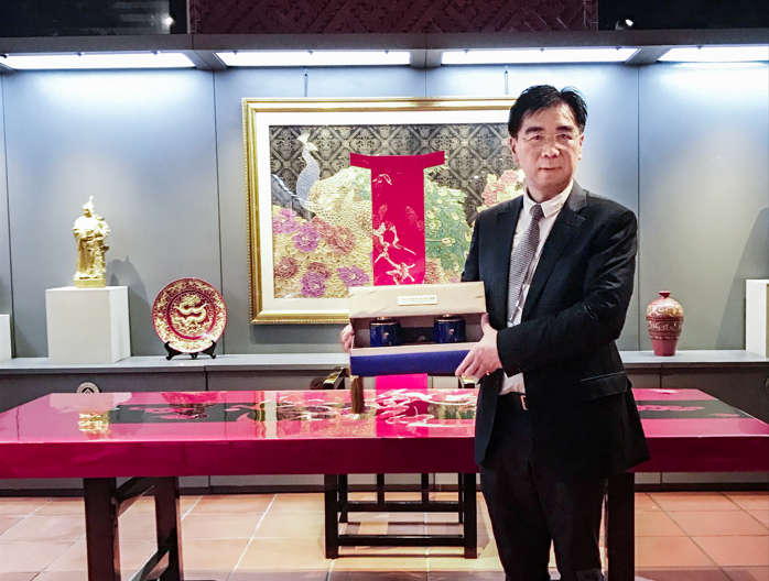 华祥苑董事长肖文华展示礼赠俄罗斯贵宾的国缤茶