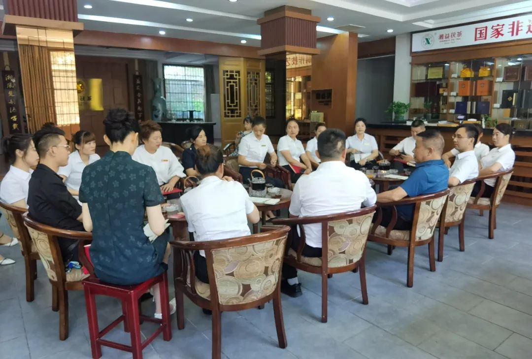 7月6日,湖南爱饭亲溪餐饮核心团队一行近20人莅临益阳茶厂有限公司参观学习。来访人员均为各门店负责人,来访益阳茶厂主要目的是学习黑茶文化,了解茯茶科学冲泡方法并运用到门店管理中去。湖南爱饭亲溪餐饮与湘益茯茶属于深度合作关系,由非遗技艺国家级传承人、公司副总经理刘杏益,副总经理余智勇等公司领导热情接待。访问团一行先后参观了湘益茶博馆、现代化的生产车间、行业内领先的湘益茯茶4.0智能化生产线、湘益品质精髓——金花酵库,详细了解了茯砖茶的历史与文化底蕴以及公司的发展历程并超出对湘益品牌的认知预期。