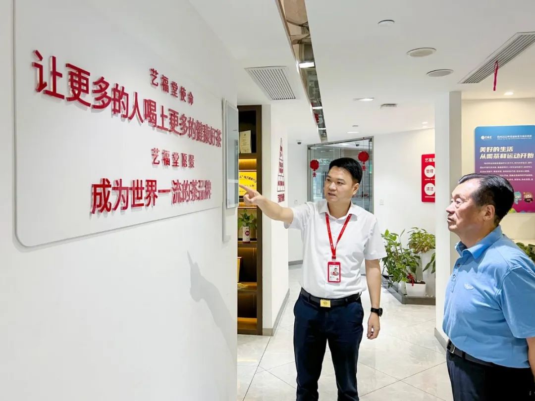 在艺福堂创始人李晓军的带领下,与会一行参观了艺福堂滨江运营中心,对艺福堂在茶文化、茶产业、茶科技方面有了更深入的理解,纷纷为艺福堂“互联网+茶”的思维、 “三茶”统筹高质量发展的做法点赞。
