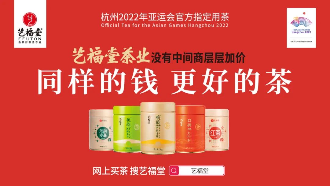 杭州艺福堂茶业有限公司是杭州市2008年首批大学生创业企业之一,位于风景秀丽的“中国茶都”——杭州,是一家集生产、销售、科研为一体、产品涵盖名优茗茶、花草养生茶及现代创新茶产品的中国茶业领军企业,拥有1750万顾客及3000家企业客户,也是2015国家高新技术企业、2017国家电子商务示范企业、2017-2021中国茶业百强企业、2020茶业创新十强企业、2017-2020浙江省骨干农业龙头企业、2018浙江名牌产品、2018-2022杭州准独角兽企业,西湖龙井茶、绿茶、红茶、代用茶、调味茶等十多项国家及行业标准制定者,杭州2022年亚运会官方指定用茶。