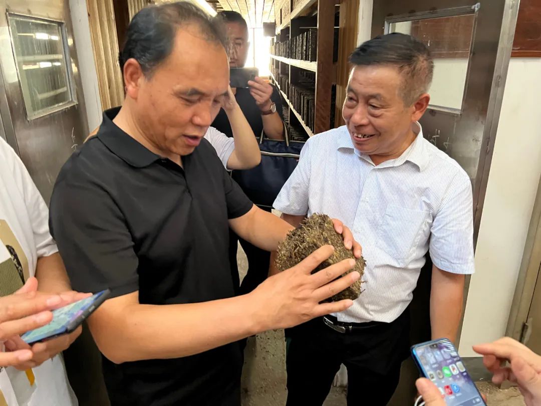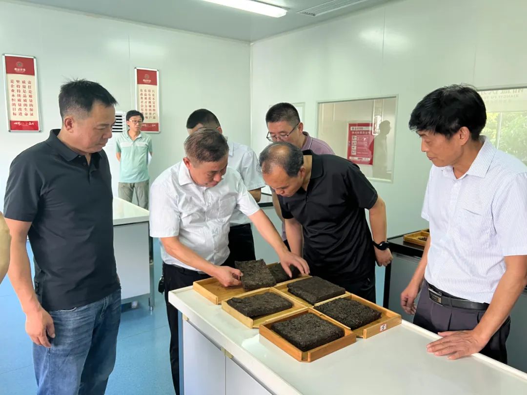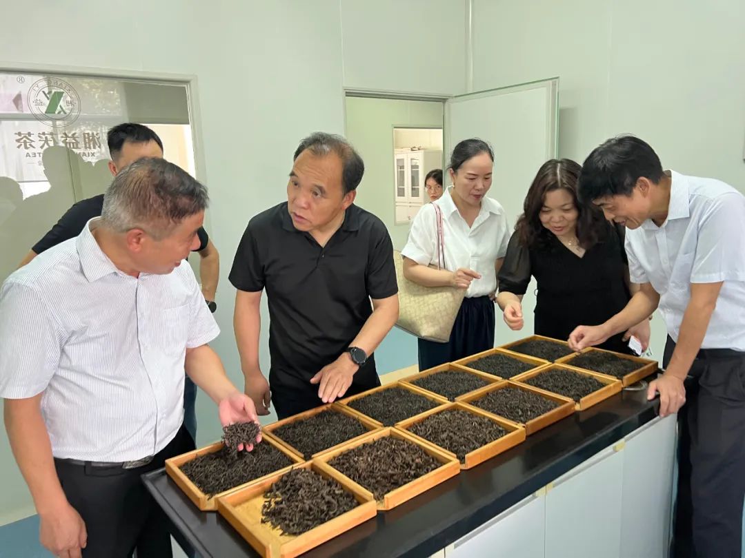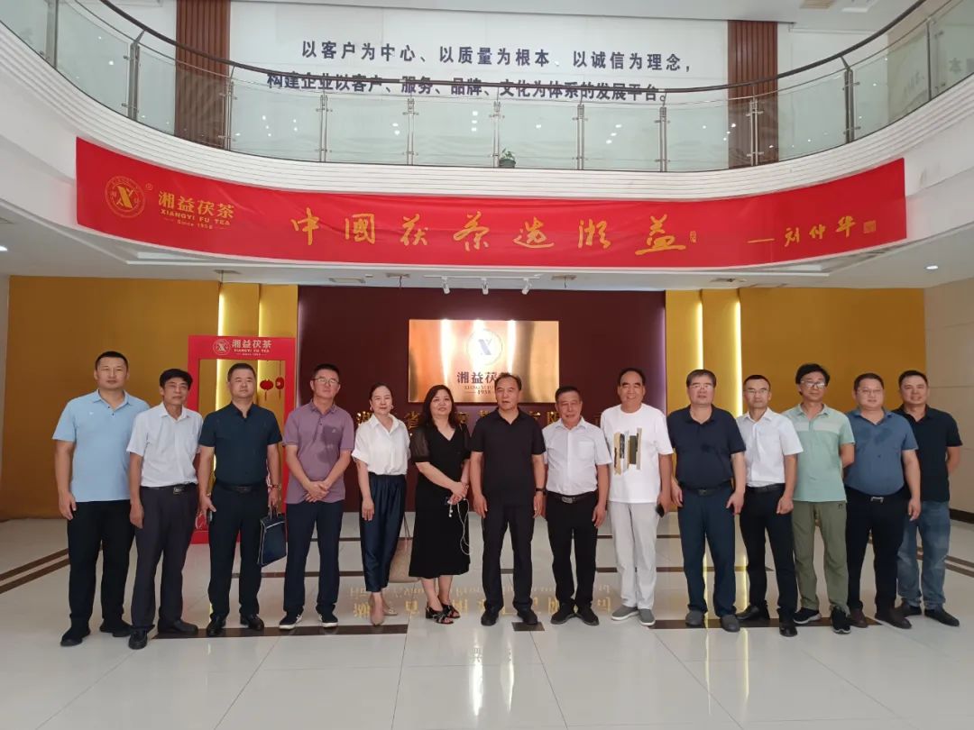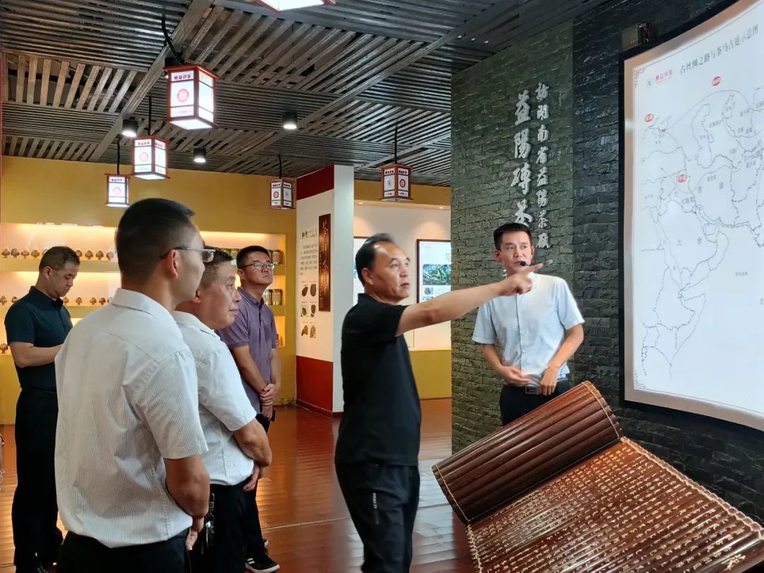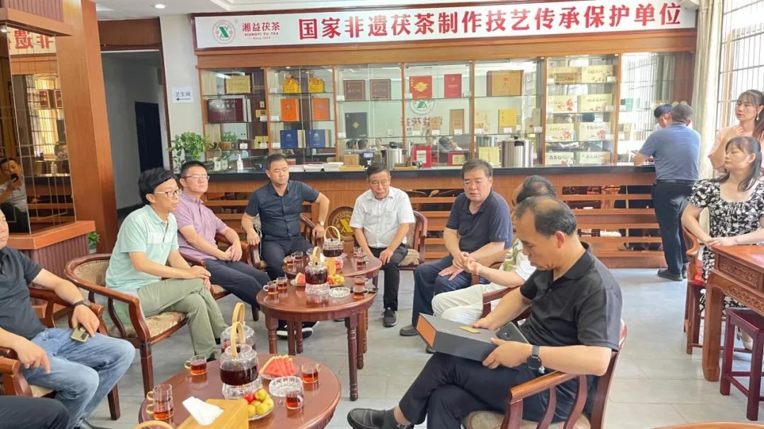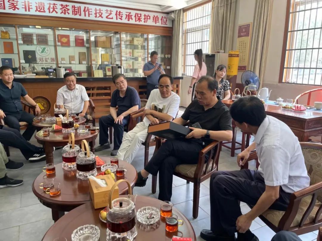 8月19日,青海省供销联社党组书记、理事会主任朱小青、青海省供销联社办公室主任王海军、青海省供销联社供销业务处三级主任科员闫国斌、青海省茶业有限公司董事长马全虎、青海省茶业有限公司办公室主任吴海林一行来到公司考察调研边销茶产销工作。湖南省供销合作总社党组成员、理事会副主任杨利凯,湖南省供销合作总社科教处处长刘娟,益阳市供销合作社党组书记、理事会主任严文凯,湖南省茶业集团纪委书记、边销茶部经理褚世炯等陪同调研。湖南省茶业集团副董事长、公司董事长彭雄根,公司总经理陈小春,国家级非遗茯砖茶制作技艺传承人、副总经理刘杏益,副总经理姚永军、余智勇热情接待。