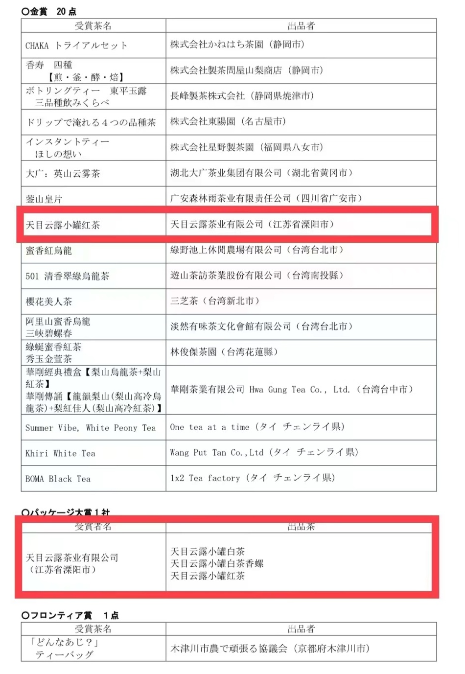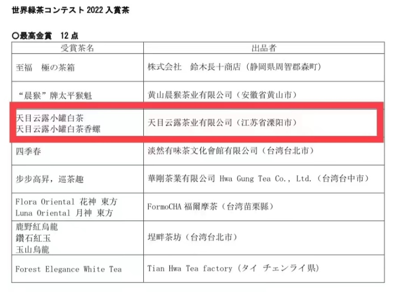 近日,从日本评审现场传来喜报,世界绿茶最高级别评选活动之一的“2022世界绿茶评比会”评选结果揭晓,由天目云露茶业有限公司出品的茶叶从世界各地95只送审参评绿茶中脱颖而出,揽获包含“最高金奖”在内的多个奖项。
