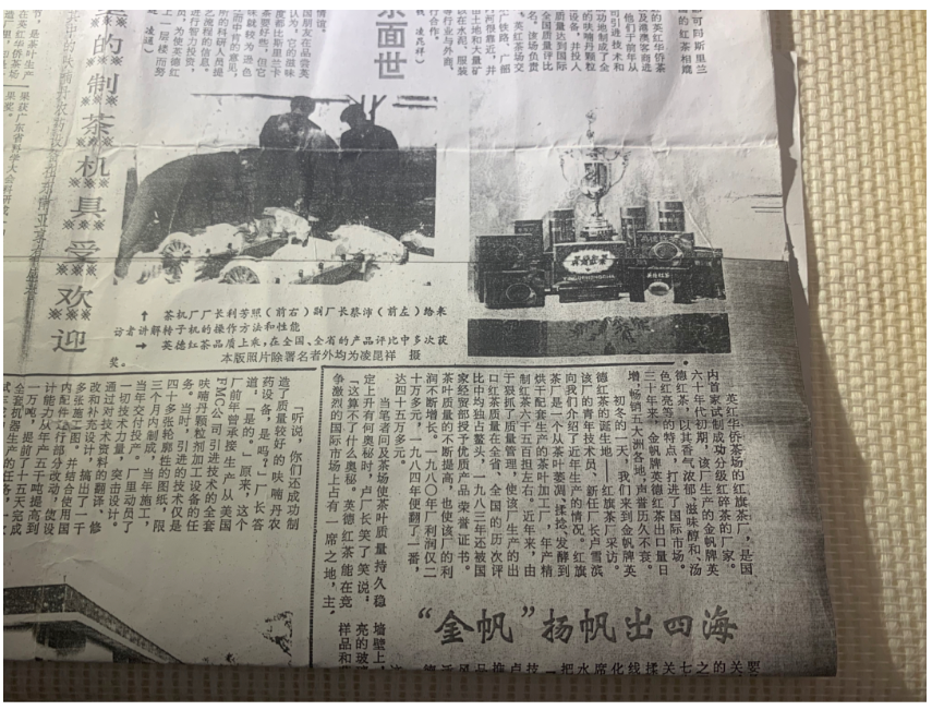 1996年9月19日,香港《东方日报》以“英德红茶香滑不苦提神醒脑”为题刊文称:“英国皇室所享用的靓红茶都是中国货,如福建的正山小种和英德红茶。英德红茶原汁香味足而苦涩味薄,懂冲泡之法香味足又滑而不苦涩。有时泡英德红茶便知红茶极品,又香又特别提神醒脑。”在另一篇文章中又写道:“英德也是中国几大产茶区之一,英德红茶是英国皇室所认定的靓茶。”文中提到的英德红茶正是那个时代的“金帆牌英德红茶”!