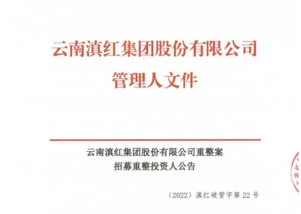 近日,云南滇红集团股份有限公司管理人发布《云南滇红集团股份有限公司重整案招募重整投资人公告》,面向社会公开招募滇红集团重整投资人。
