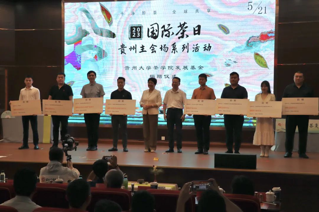 为助力茶产业人才培养,让茶科技茶人才强茶产业,甲秀茶、贵州省湄潭县栗香茶业有限公司、贵州国科锌硒科技有限公司、贵州创联玖号供应链管理集团有限公司、贵州黄红缨茶业有限公司、贵州良友现代农业科技有限公司、贞丰县长田茶产业联合体、贵州省雷山县毛克翕茶业有限公司等8家热心茶企分别向“贵州大学茶学院发展基金”发起了捐赠。