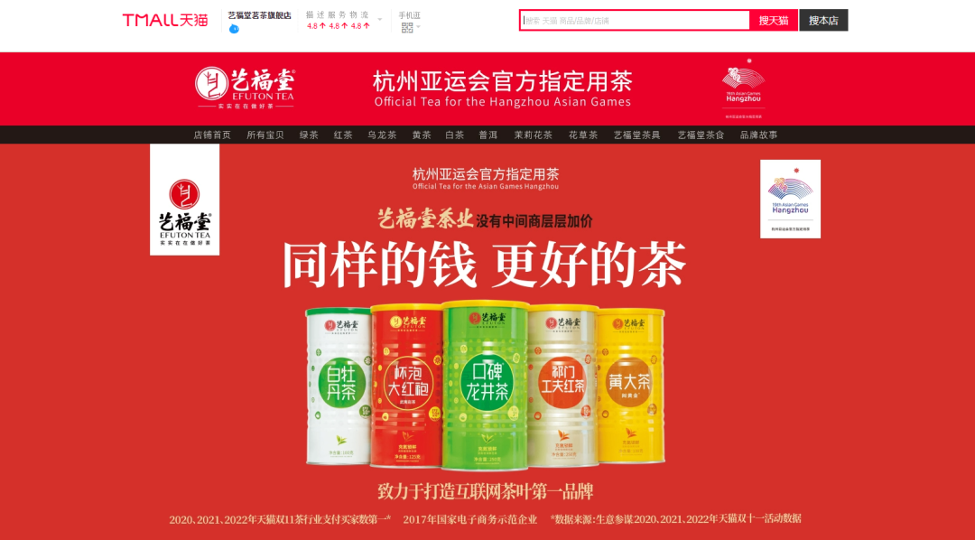 艺福堂茶业作为杭州亚运会官方指定用茶,紧跟社会潮流与消费者需求变化,利用年轻化、多元化的方式深耕亚运IP创新营销,引爆各大社交媒体;打造亚运好茶,引领潮流创新消费,助力中国茶焕能新生;向世界讲述中国茶故事,弘扬中国茶文化。