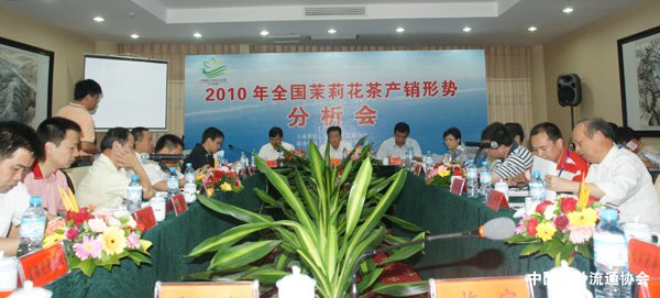 中国茶叶流通协会常务副会长王庆、中共横县县委书记欧波、横县人民政府县长黄国健等领导,张一元、吴裕泰、猴王等来自北京、湖南、福建、山东、四川、陕西、吉林等地的茉莉花茶产销企业与批发市场的负责人、茶商代表、业界专家学者等近50人齐聚一堂,沟通信息、共同研判分析2010年茉莉花茶产业产销形势,合力共谋茉莉花茶产业发展大计。