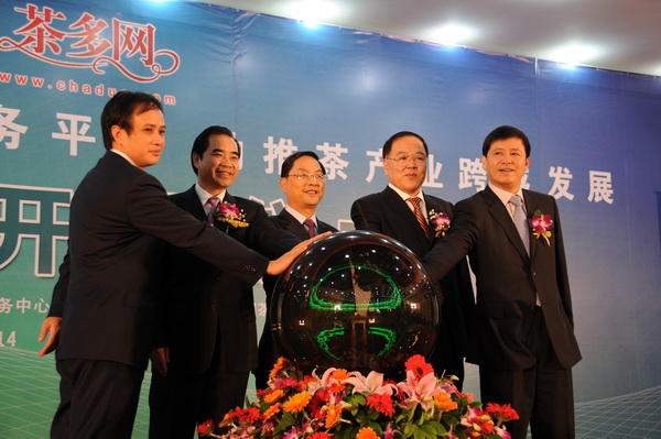 14日上午11点多,商务部副部长蒋耀平、福建省副省长叶双瑜、中国国际电子商务中心主任刘俊生、中国茶叶流通协会秘书长吴锡端、安溪县委书记李建辉共同启动开通仪式,随着激光球的启动,中国茶都电子商务平台茶多网正式上线运营。