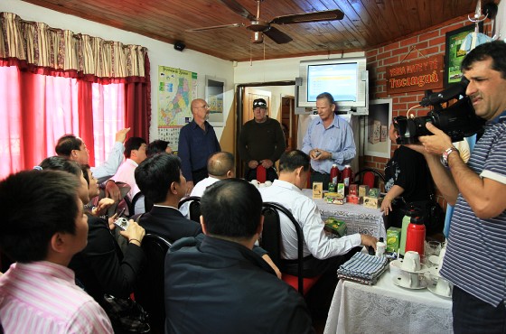 考察中,团组受到阿根廷、巴西两国有关组织的热情接待。阿根廷农业生产部还专门召开了中阿两国茶业交流座谈会,会上阿方详细介绍了阿根廷的茶叶生产与加工情况。双方还商定,今后要加强多方合作,以促进两国茶叶贸易往来。考察团还在阿方政府的安排下,驱车几百公里专程访问了阿根廷最大的茶叶生产合作社—— RUIZ DE MONTOYA合作社的茶厂和茶园,现场体验与学习阿根廷马黛茶及红绿茶的生产与加工情况,深入了解了马黛茶文化。据 RUIZ DE MONTOYA茶叶生产合作社负责人 JOSE EDUARDO MOREIRA 介绍,阿根廷主要生产是马黛茶,但也生产一部分红茶与绿茶,红绿茶的茶种主要是从中国引进。从茶树裁培、土壤的翻耕、施肥、茶叶的采摘及加工等全程 100%实施机械化生产与管理,并严格按照 GAP、 GMP和 HACCP等国际相关标准的要求组织生产,以实现阿根廷茶业的可持续发展。而马黛茶是阿根廷本土的茶树品种,不同于我国的茶类。