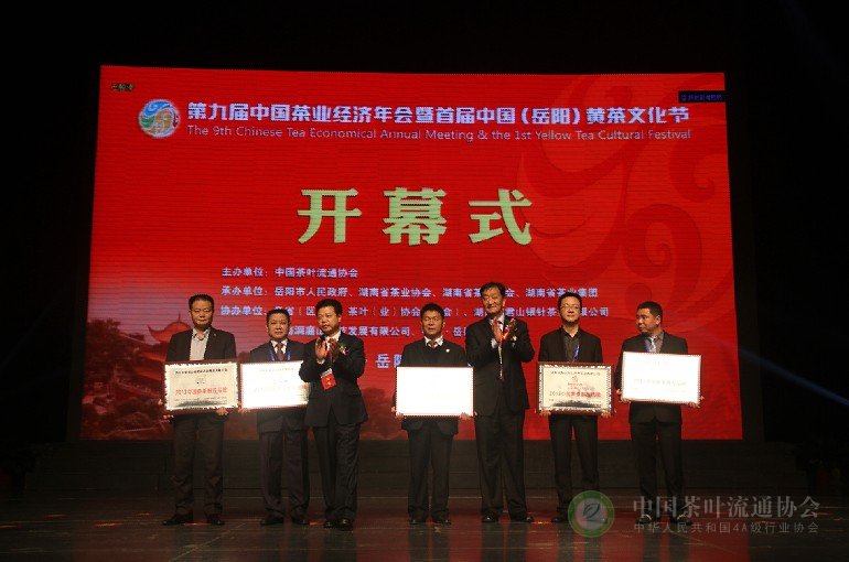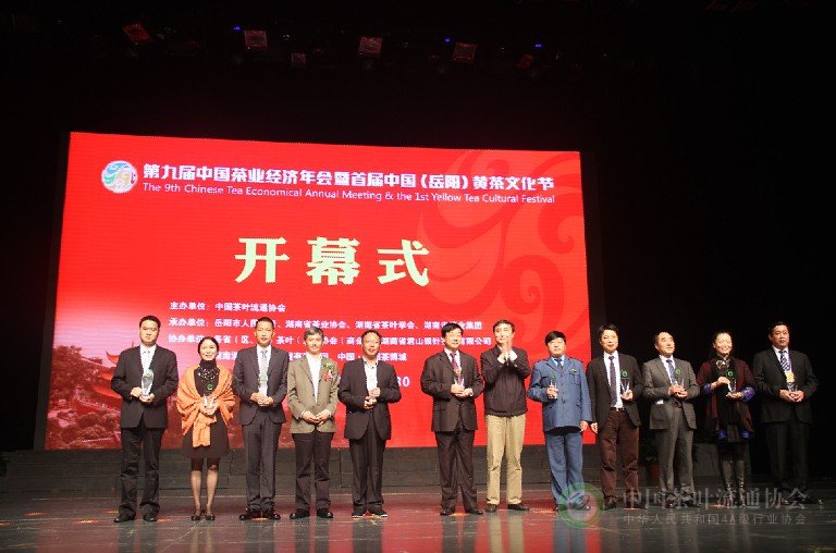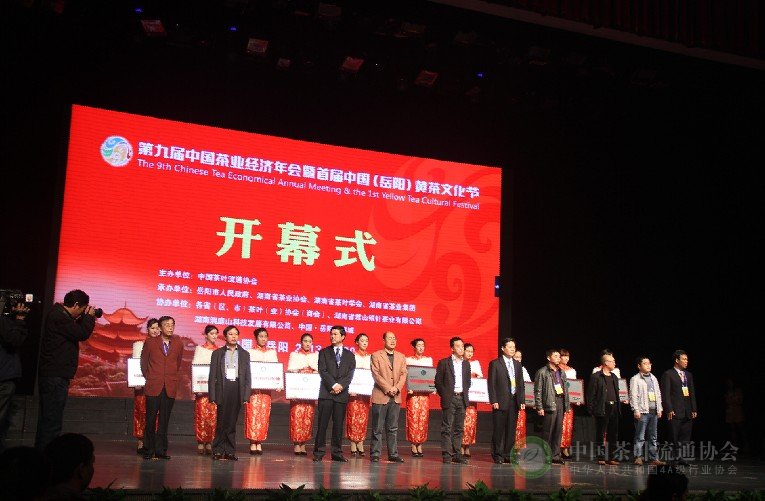 10月30日,“第九届中国茶业经济年会暨首届中国(岳阳)黄茶文化节”在湖南省岳阳会展中心隆重开幕。中华全国供销合作总社党组成员、理事会副主任顾国新,湖南省委常委、省军区政委李有新,湖南省人大副主任徐明华,湖南省政协副主席武吉海,云南省政协原副主席陈勋儒先生,中国茶叶流通协会常务副会长王庆,国家食品药品监督管理总局食品监管一司巡视员陈传意,中共岳阳市委书记、市长盛荣华,以及农业部、卫生部、国家质检总局、湖南省各省直机关的领导,全国各省市茶叶协会负责人、知名茶企负责人、科研机构专家学者等出席了开幕式。