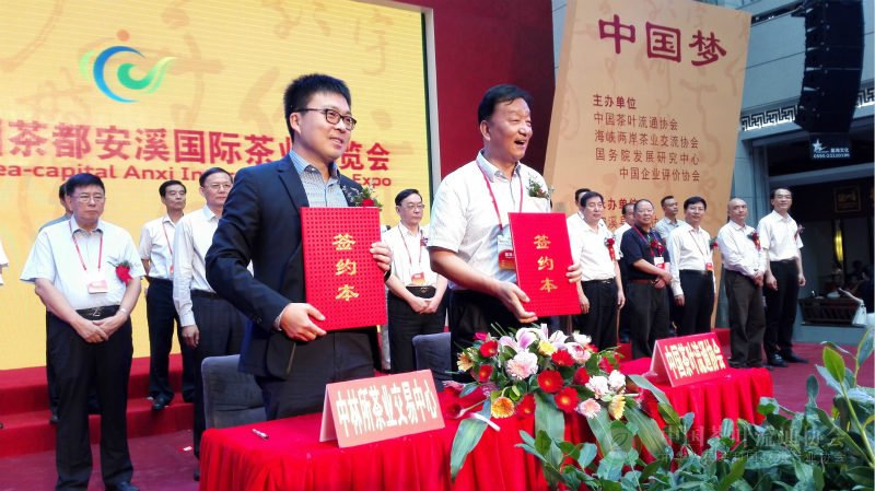 同日上午,以“中国茶·中国梦”为主题的第六届中国茶都安溪国际茶业博览会10月10日在福建安溪举行。来自海上丝绸之路沿线国家和地区以及全国各地专业茶叶市场、茶产业机构的2000多名代表参会。2010年以来,安溪县已连续成功举办了5届中国茶都安溪国际茶业博览会,展品总数超过10万种。本届茶博会由中国茶叶流通协会、海峡两岸茶业交流协会、国务院发展研究中心中国企业评价协会主办,中华全国供销合作总社杭州茶叶研究院、国务院发展研究中心管理世界杂志社、京东集团协办,安溪县茶叶协会、安溪铁观音同业公会和茶博汇投资有限公司承办。中国茶叶流通协会常务副会长王庆出席开幕式并与中国林权交易所签订中国茶业交易中心战略合作协议。