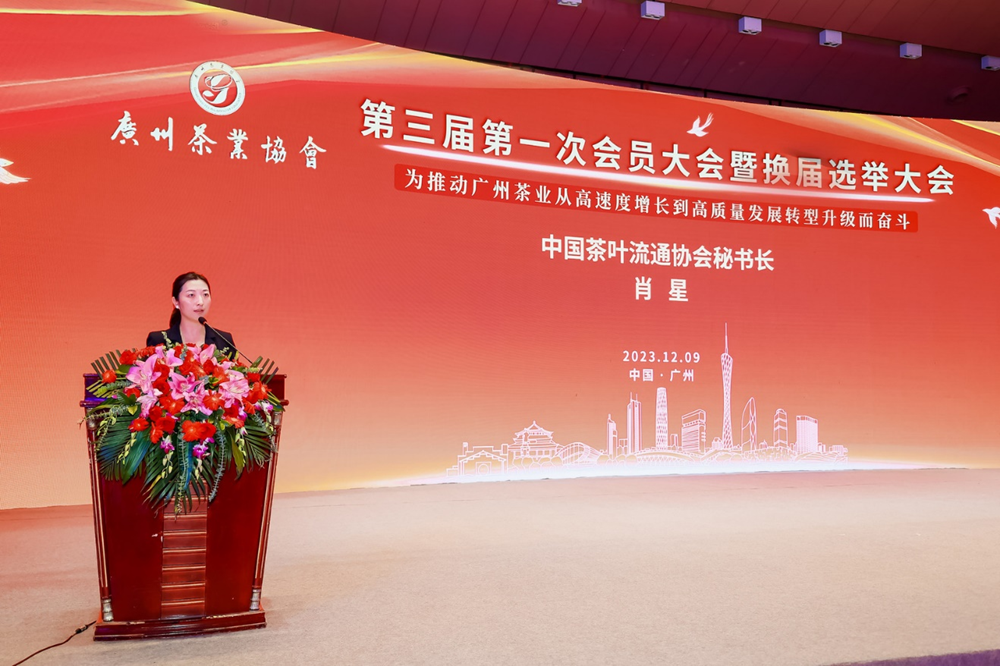 2023年12月9日,广州茶业协会第三届一次会员大会暨换届大会在广州召开。受王庆会长的委托,中国茶叶流通协会秘书长肖星到会祝贺并致辞。