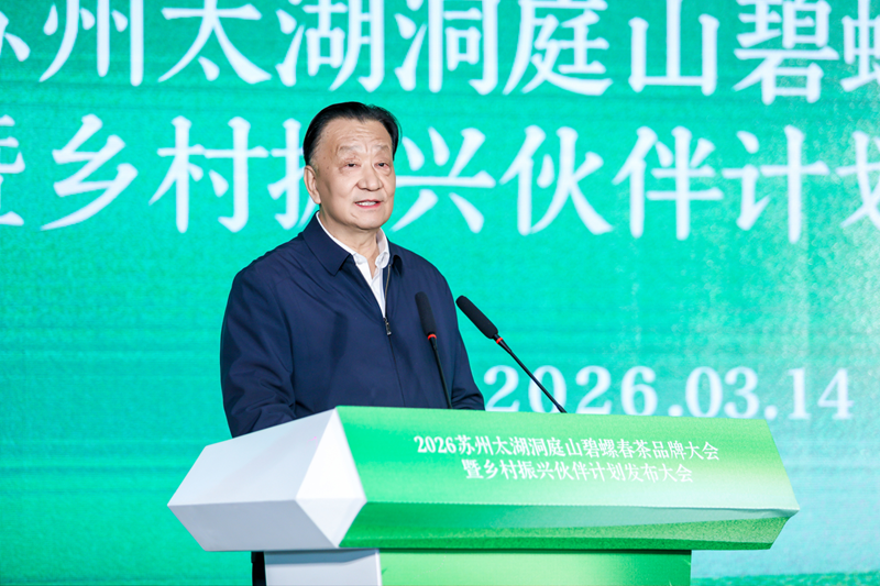 春风拂洞庭,茶香满苏州。近日,2026苏州太湖洞庭山碧螺春茶品牌大会在苏州隆重举办。大会以“传承茶文化、做强茶品牌、壮大茶产业”为主题,汇聚各级政府部门领导、行业协会负责人、知名茶企代表及广大茶人茶商等各界嘉宾,共话碧螺春发展新机遇,共绘茶产业高质量发展新蓝图。中国茶叶流通协会会长、全国茶叶标准化技术委员会主任委员王庆应邀出席活动。