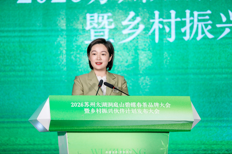 苏州市太湖国家旅游度假区管委会副主任方芳在活动上致辞,她表示,为守护好洞庭山碧螺春茶,江苏省通过了首部关于茶叶的立法项目——《苏州市洞庭山碧螺春茶保护条例》;吴中区“十四五”时期累计投入1.6亿元,在茶山上修建泵站、蓄水池,铺设管道,建设了共享加工中心,运用物联网、区块链技术打造智慧茶园,实现从茶园到茶杯的全流程溯源。未来将以更大力度支持茶产业发展,深化农文旅融合,推动碧螺春从“好茶”向“好品牌、好产业、好效益”升级,为乡村振兴注入强劲动能。