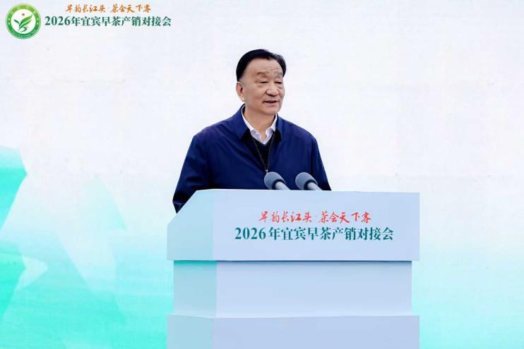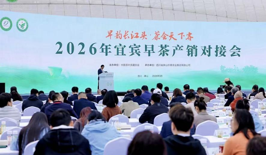 “三江早春茶烟暖,翠染千峰云雾间”,3月20日,以“早韵长江头 茶会天下客”为主题的2026宜宾早茶产销对接会在宜宾市屏山县隆重启幕。本次活动汇聚了来自全国各地的茶叶企业、行业组织、茶叶采购商、经销商等参会代表400余人,共同品味宜宾早茶的鲜醇甘爽,探讨茶产业高质量发展新路径。四川省人大常委会党组成员、副主任祝春秀,中国茶叶流通协会会长、全国茶叶标准化技术委员会主任委员王庆等领导嘉宾出席活动。会议由宜宾市人民政府副市长周文宇主持。