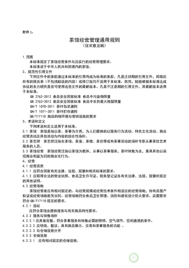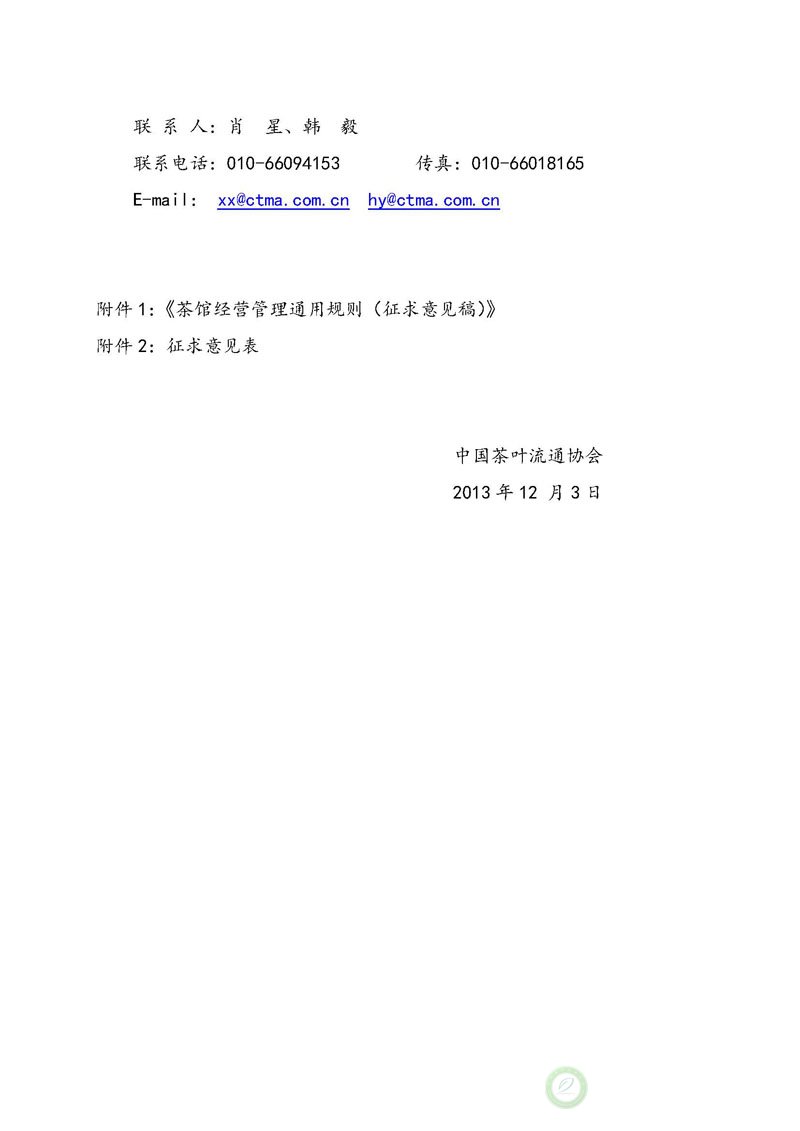 关于征求《茶馆经营管理通用规则(征求意见稿)》意见的函
