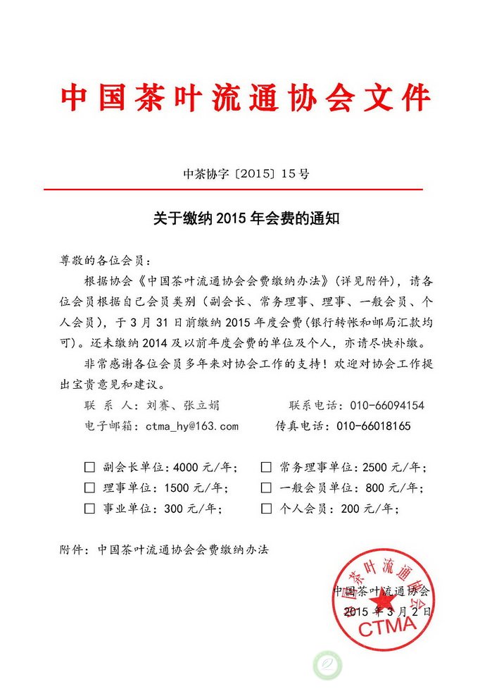 关于缴纳2015年会费的通知