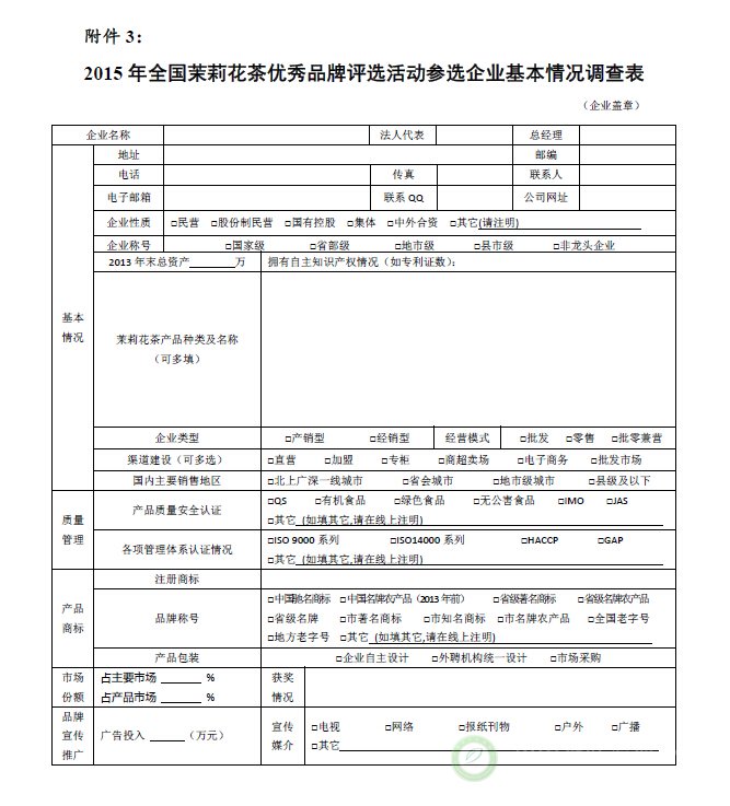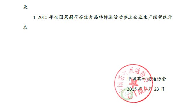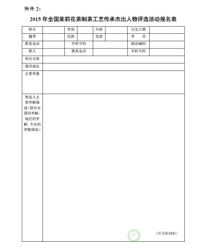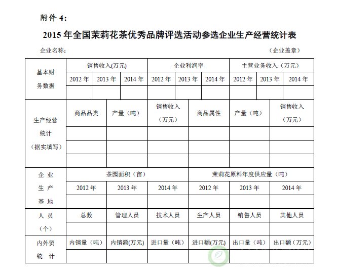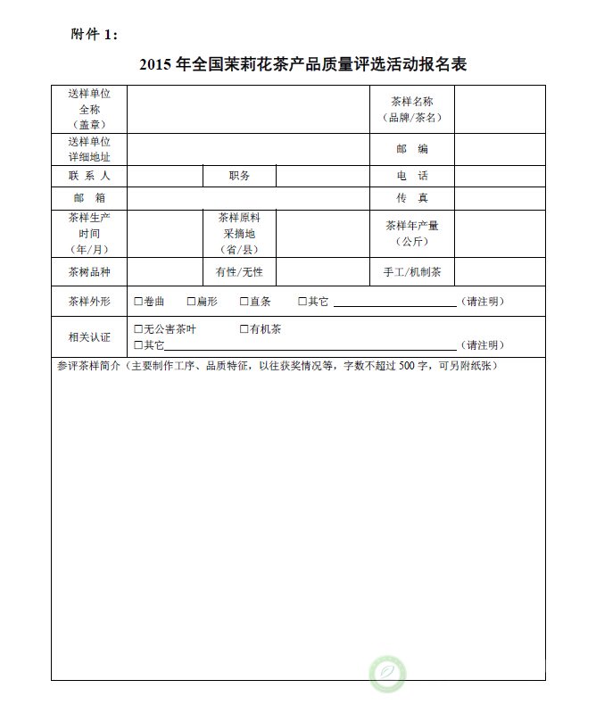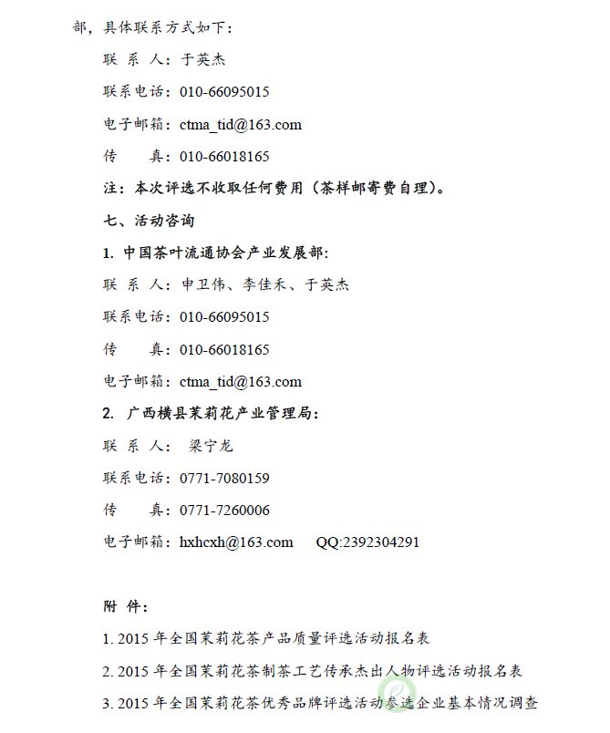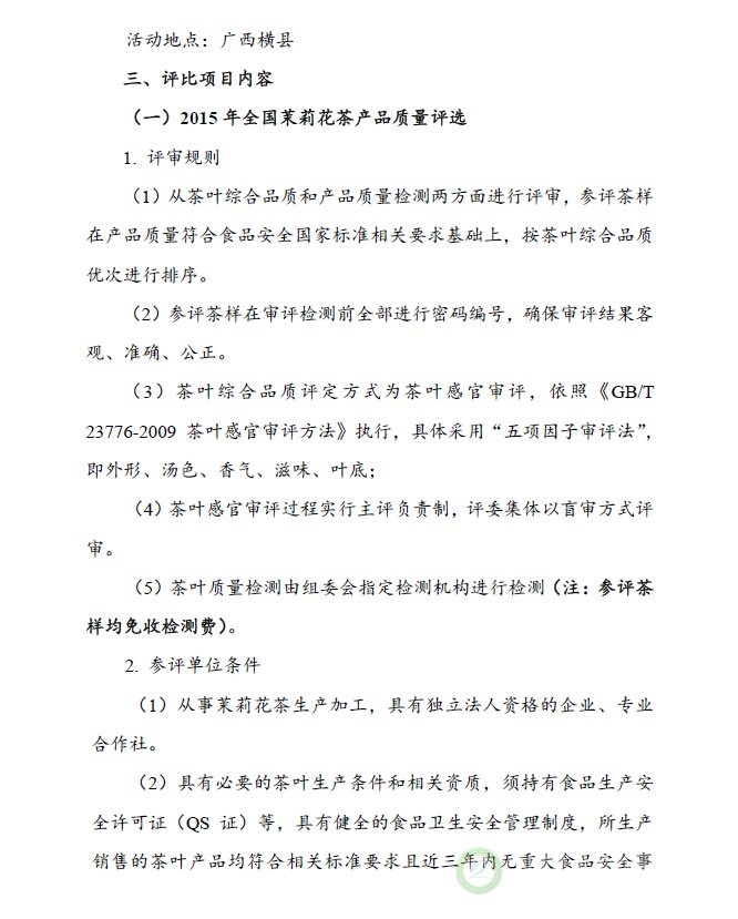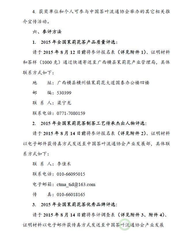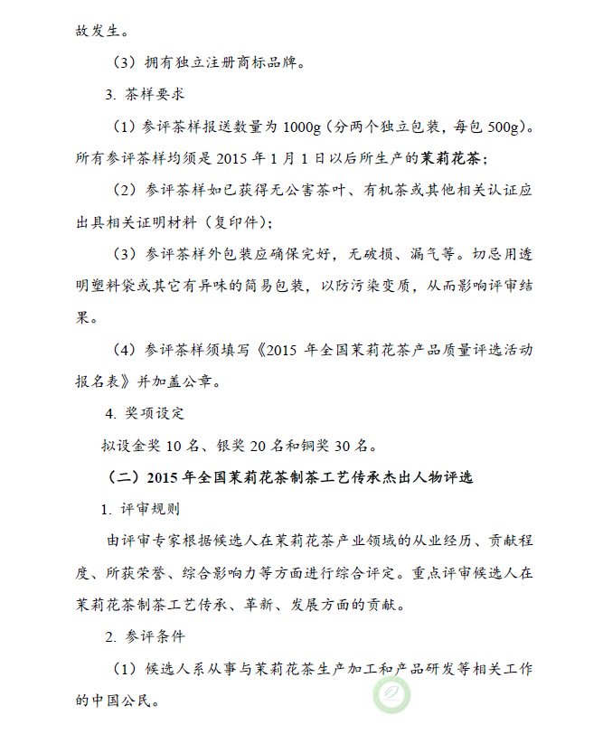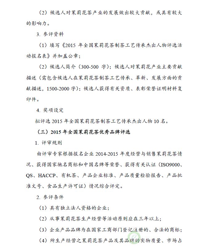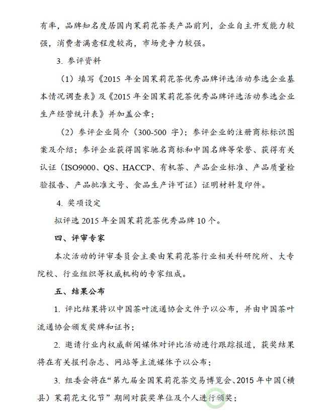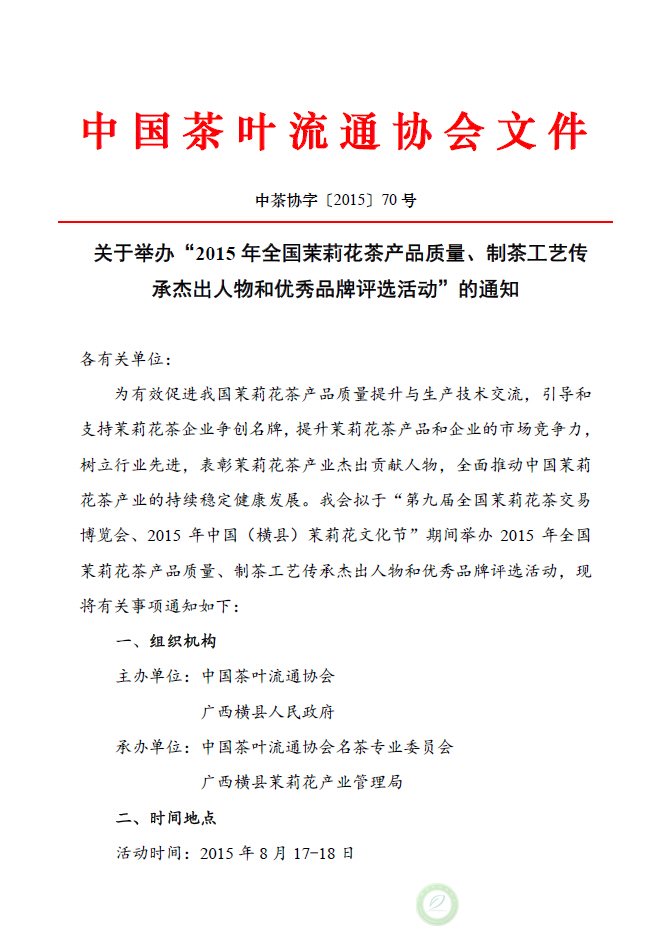 关于举办“2015年全国茉莉花茶产品质量、制茶工艺传承杰出人物和优秀品牌评选活动”的通知