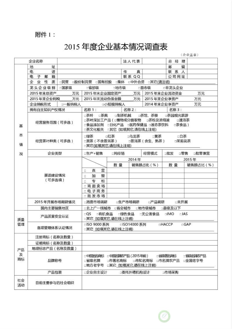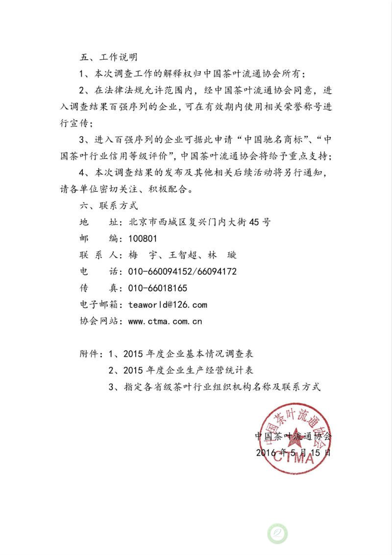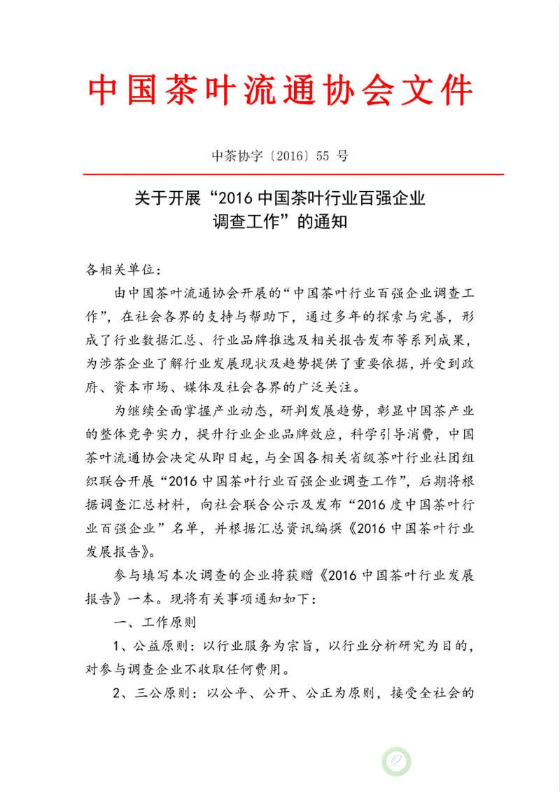 关于开展“2016中国茶叶行业百强企业调查工作”的通知