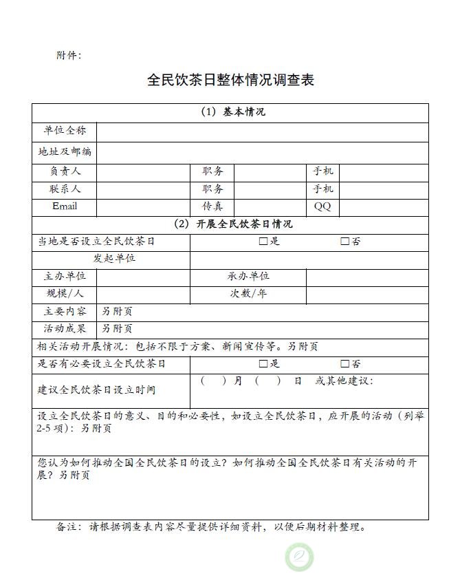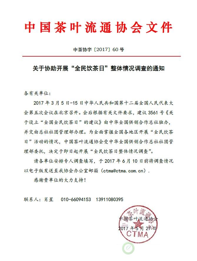 关于协助开展“全民饮茶日”整体情况调查的通知
