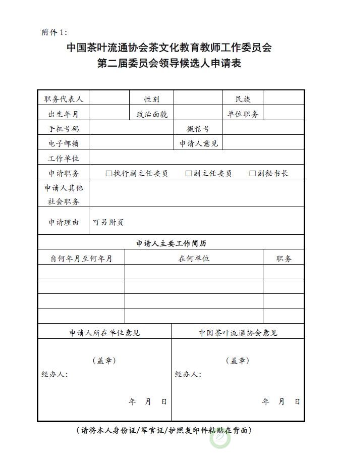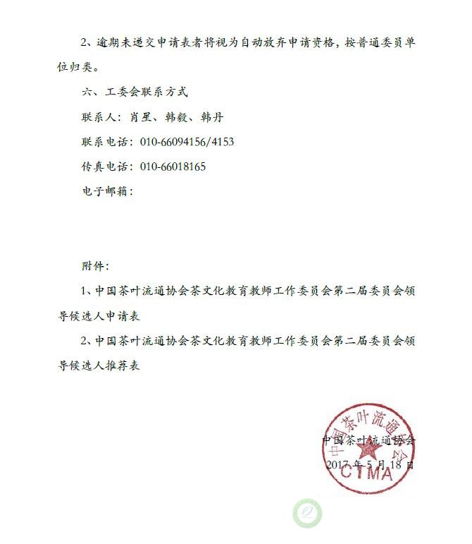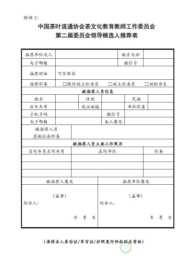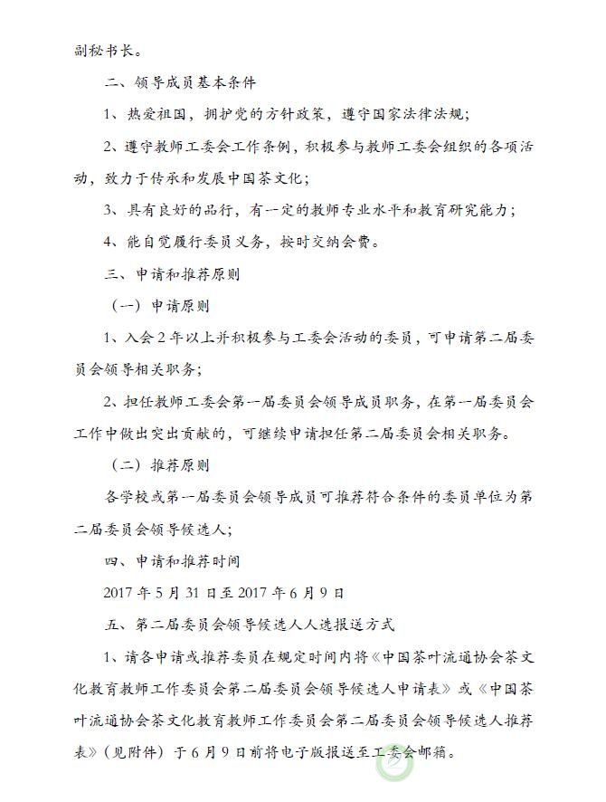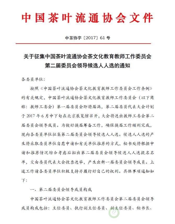 关于征集中国茶叶流通协会茶文化教育教师工作委员会第二届委员会领导候选人人选的通知