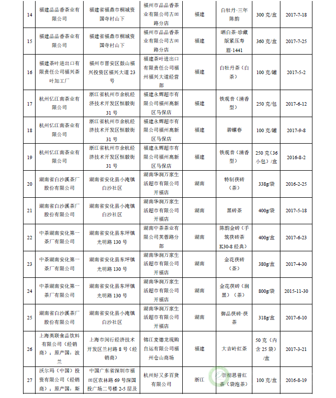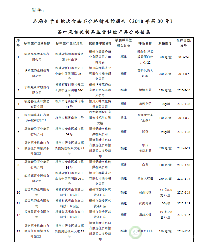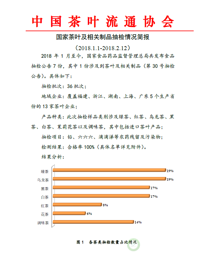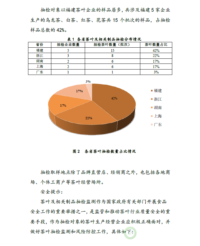 国家茶叶及相关制品抽检情况简报