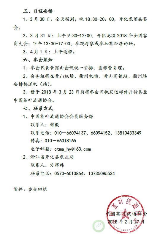关于邀请参加“新时代•开化龙顶2018年全国客商大会”的通知
