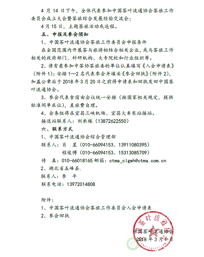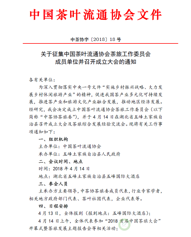 关于征集中国茶叶流通协会茶旅工作委员会成员单位并召开成立大会的通知