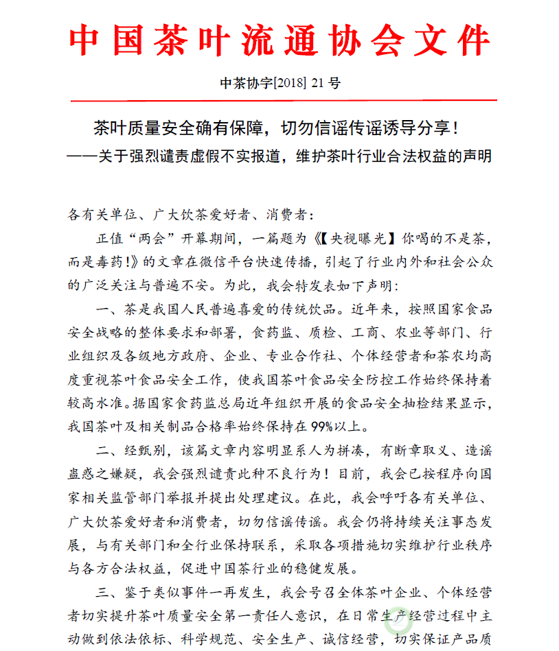 茶叶质量安全确有保障,切勿信谣传谣诱导分享!