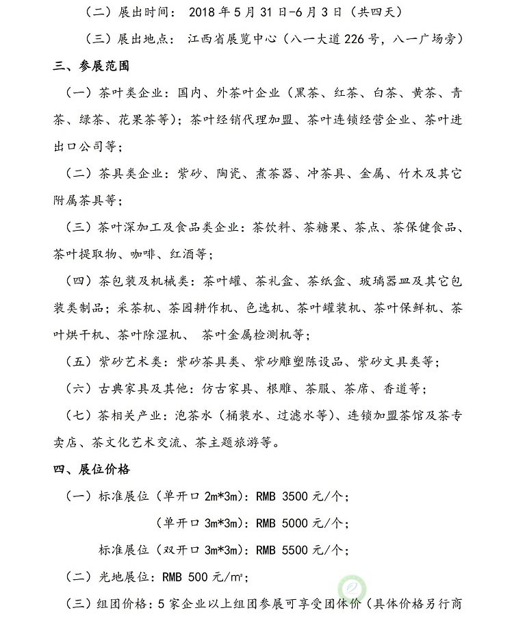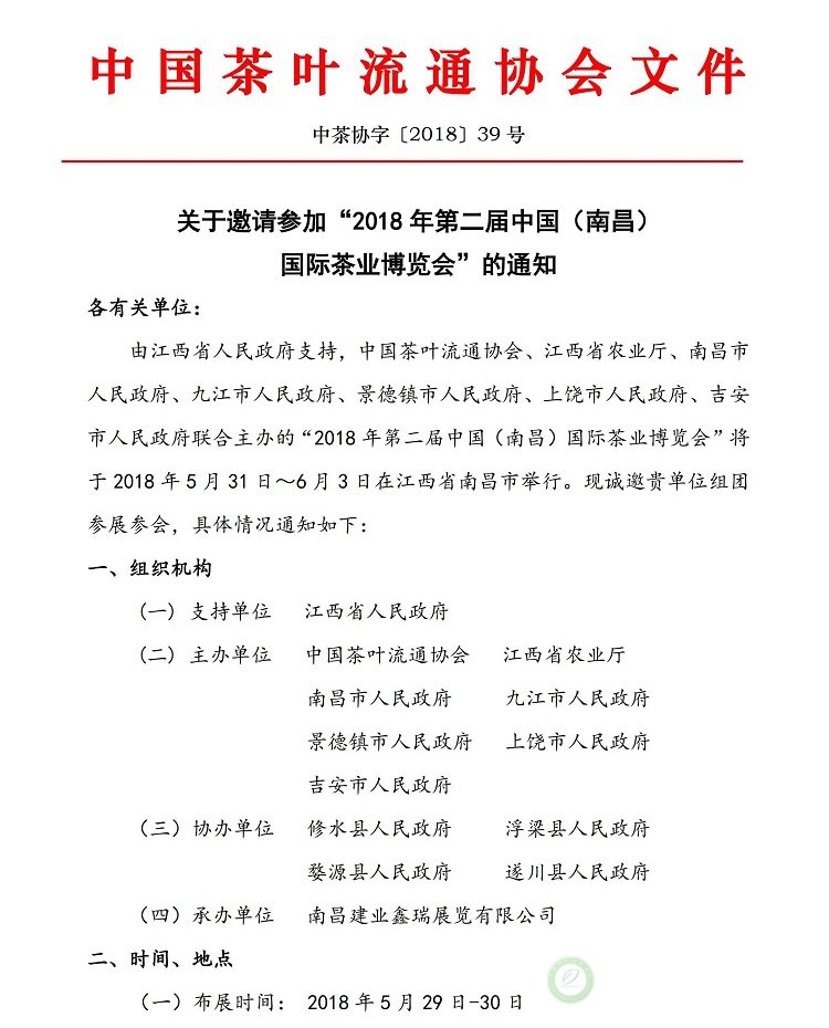 关于邀请参加2018年第二届中国(南昌)国际茶业博览会的通知
