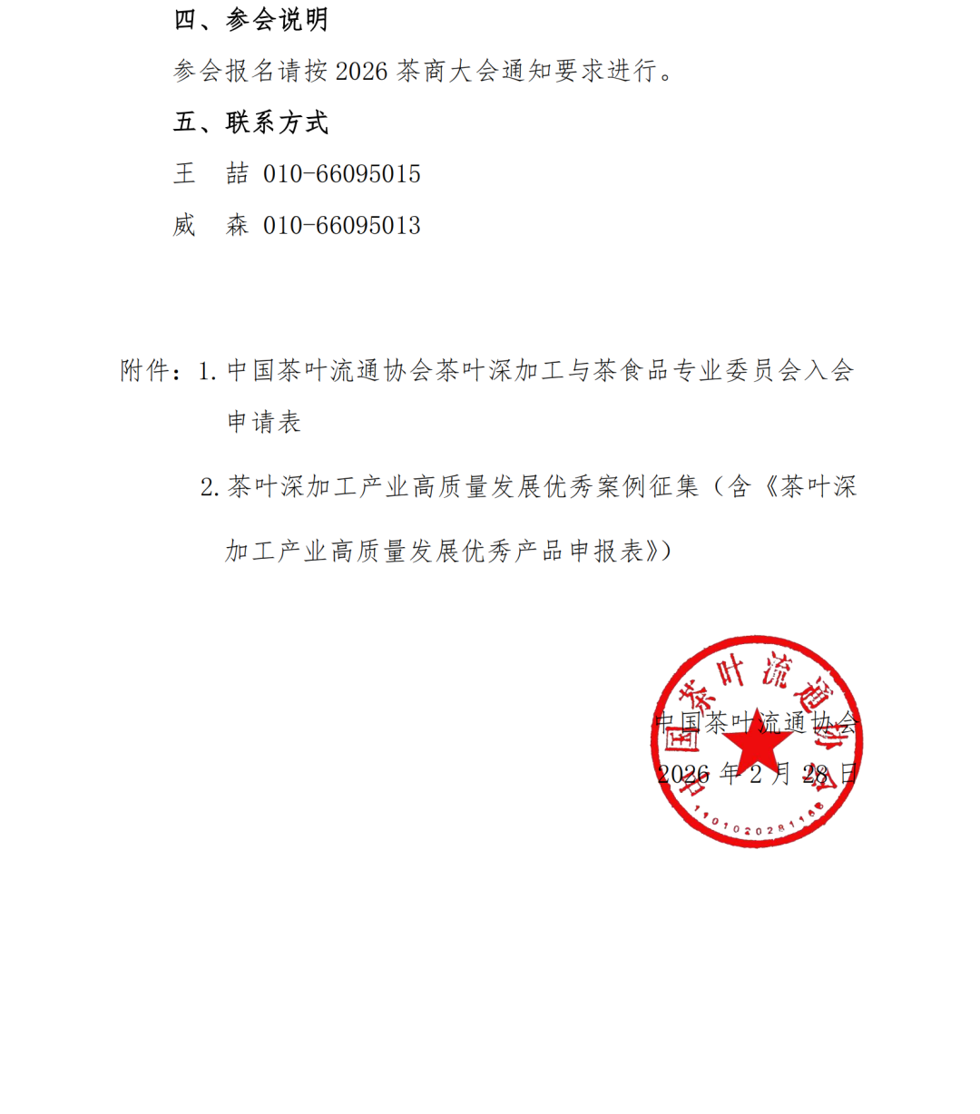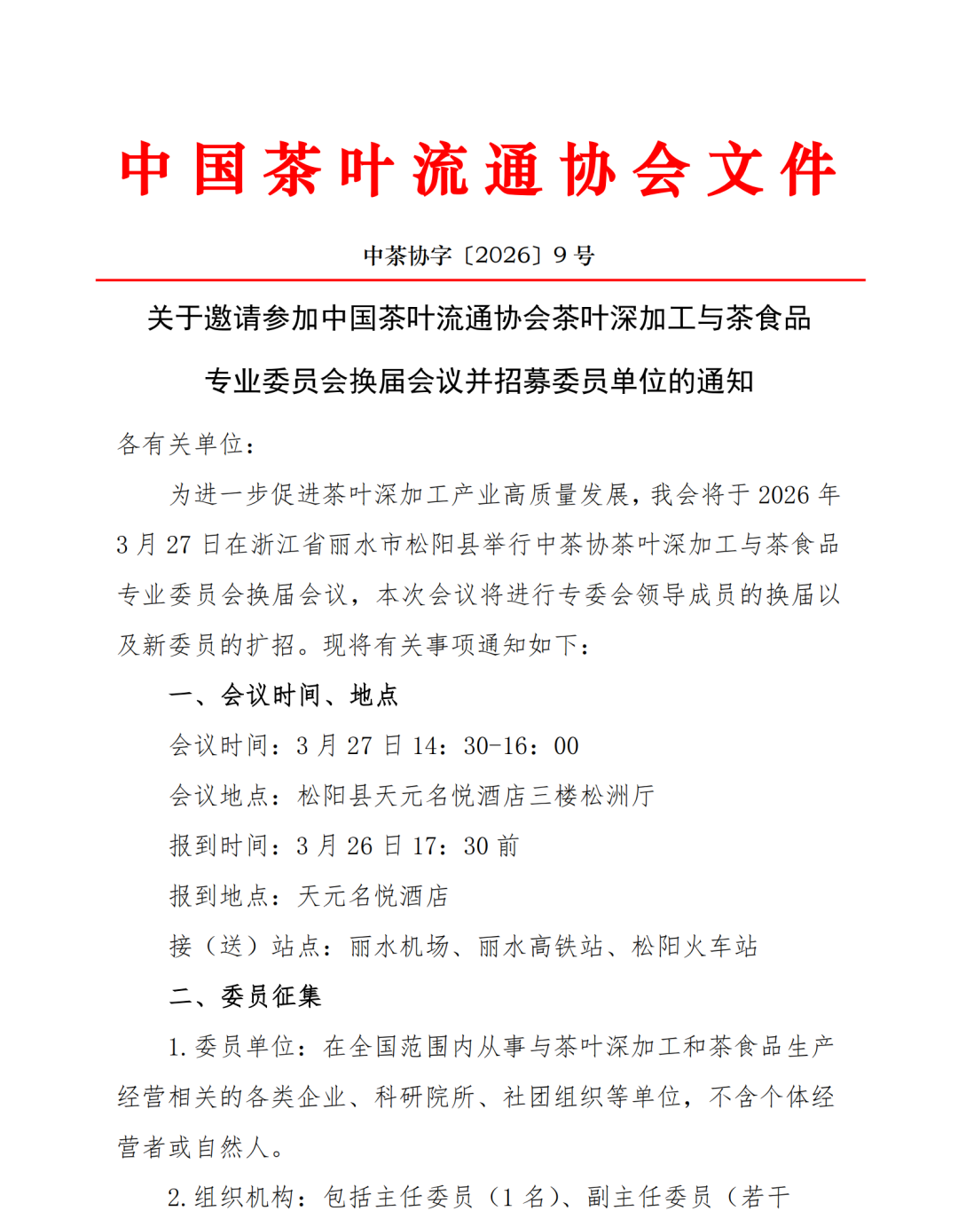关于邀请参加中国茶叶流通协会茶叶深加工与茶食品专业委员会换届会议并招募委员单位的通知