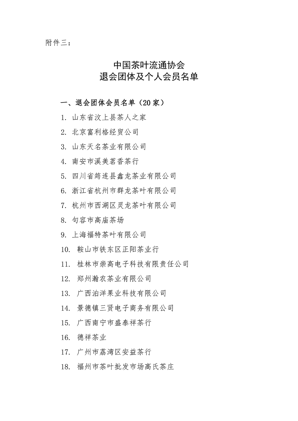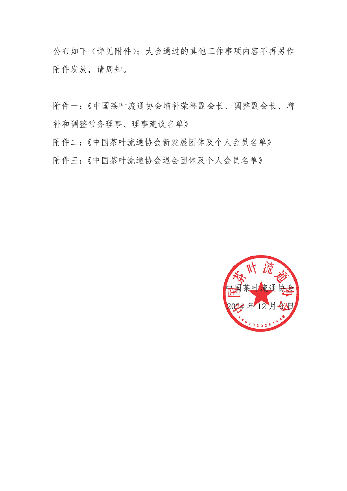 关于中国茶叶流通协会第七届三次理事会通过事项的通知